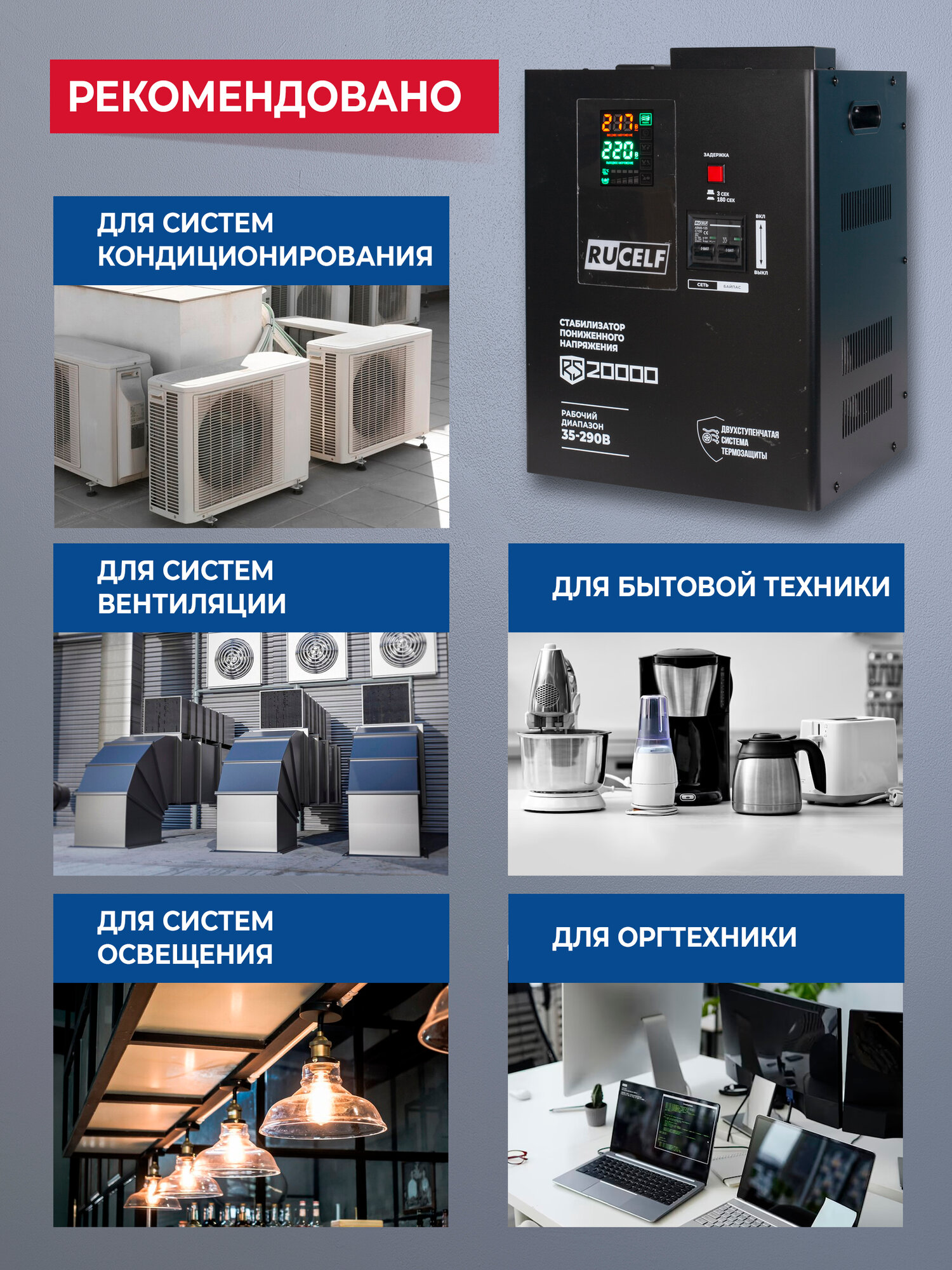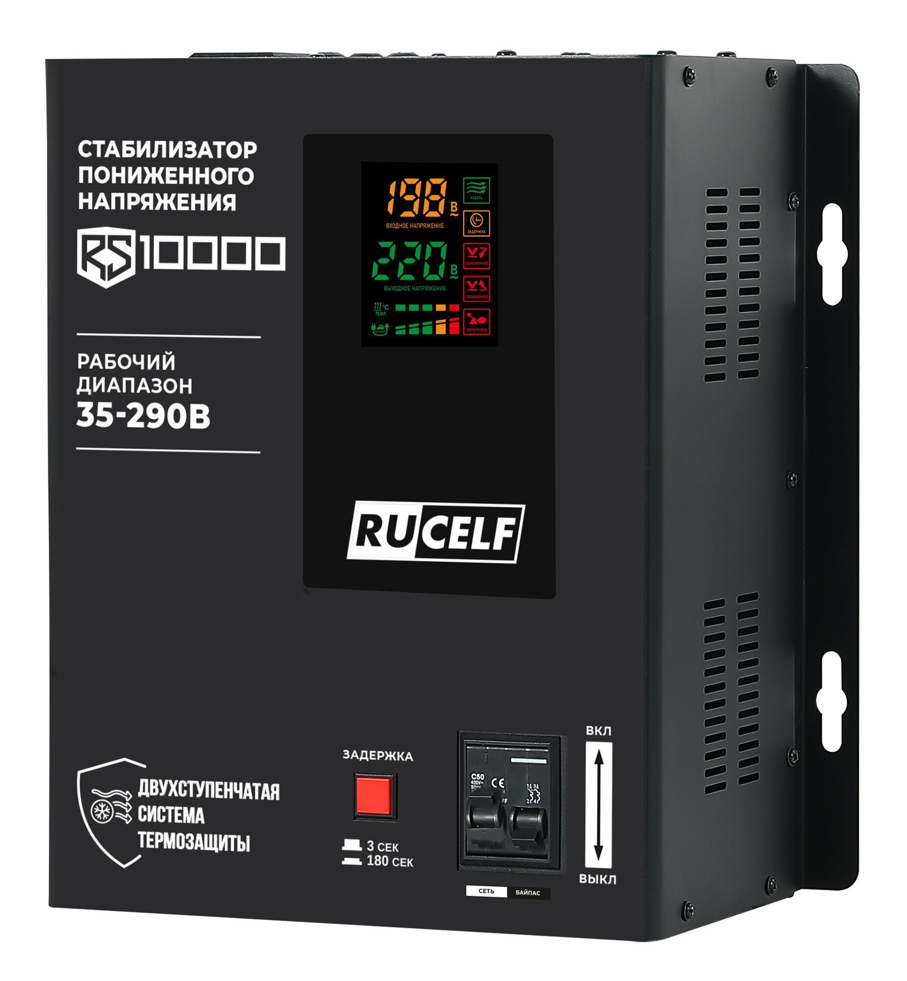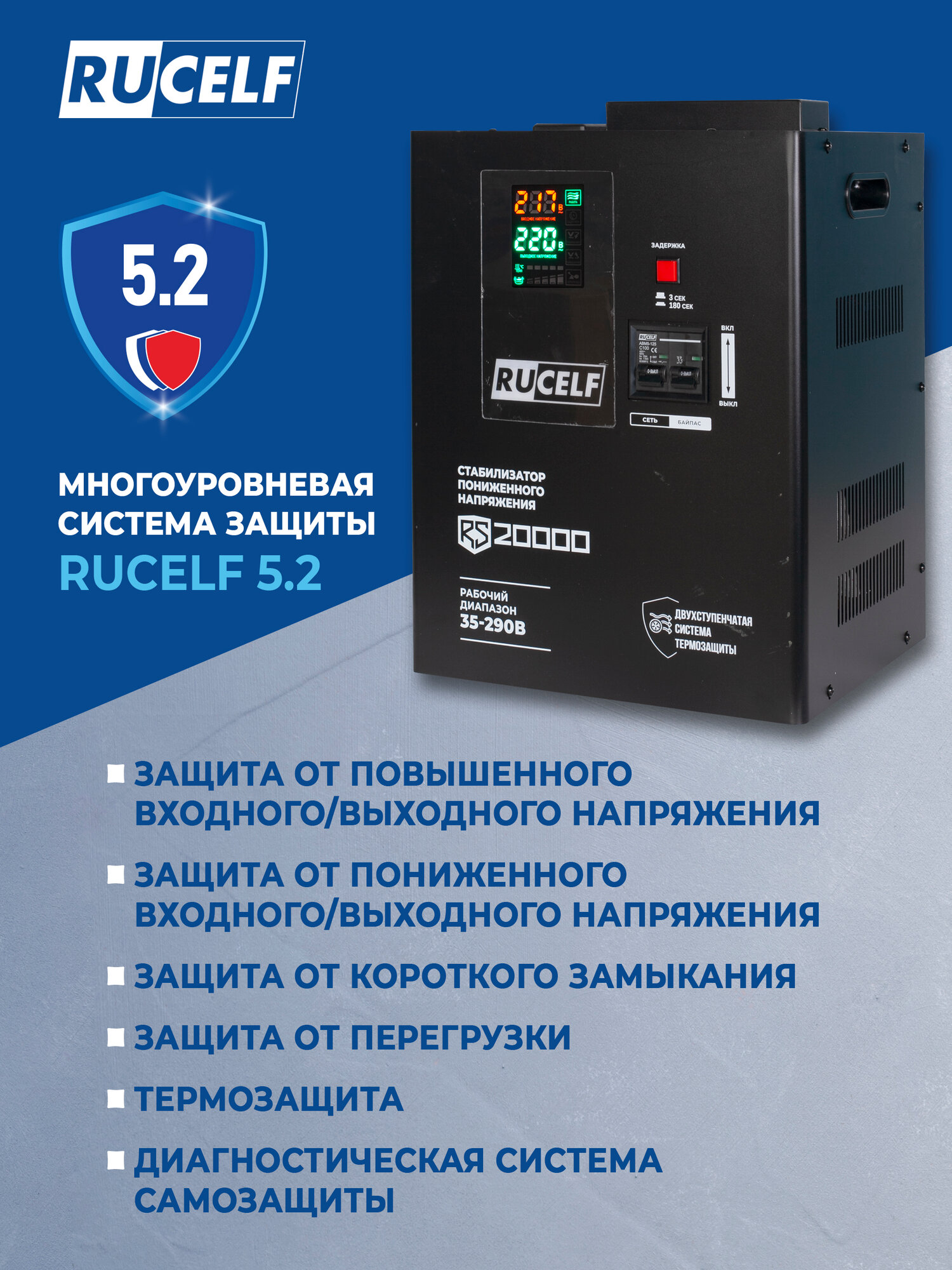 Стабилизатор напряжения RUCELF RS-20000, релейный, 20000 ВА, настенный, от пониженного напряжения интересное: