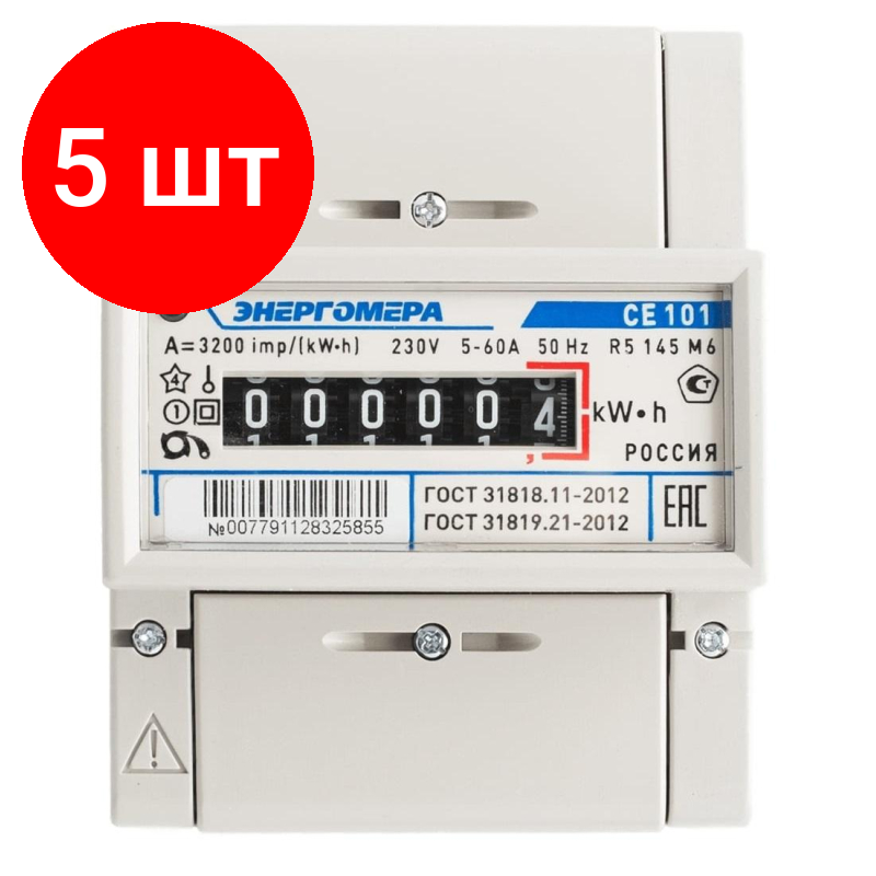 Купить Комплект 5 штук, Счетчик Энергомера CE101 R5 145 M6 1ф 5-60А 1 тариф (101001003007791)