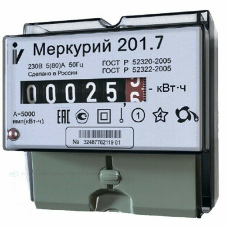 Счетчик электроэнергии Меркурий 201.7 однофазный однотарифный, 5(60), кл. точ. 1.0, D, эмоу. (201.7) интересное: