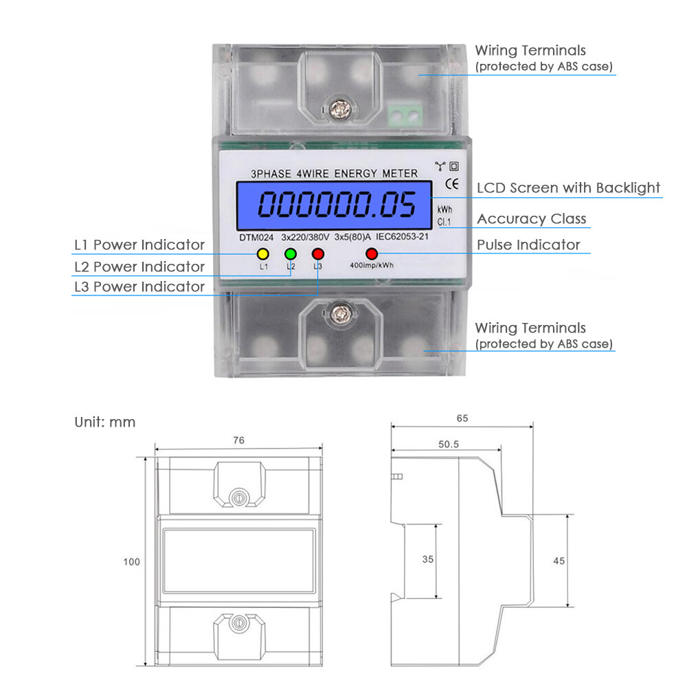 Купить 3-фазный 4-проводный счетчик энергии 220 / 380V 5-80A