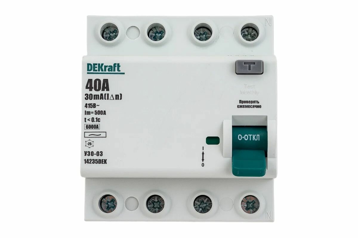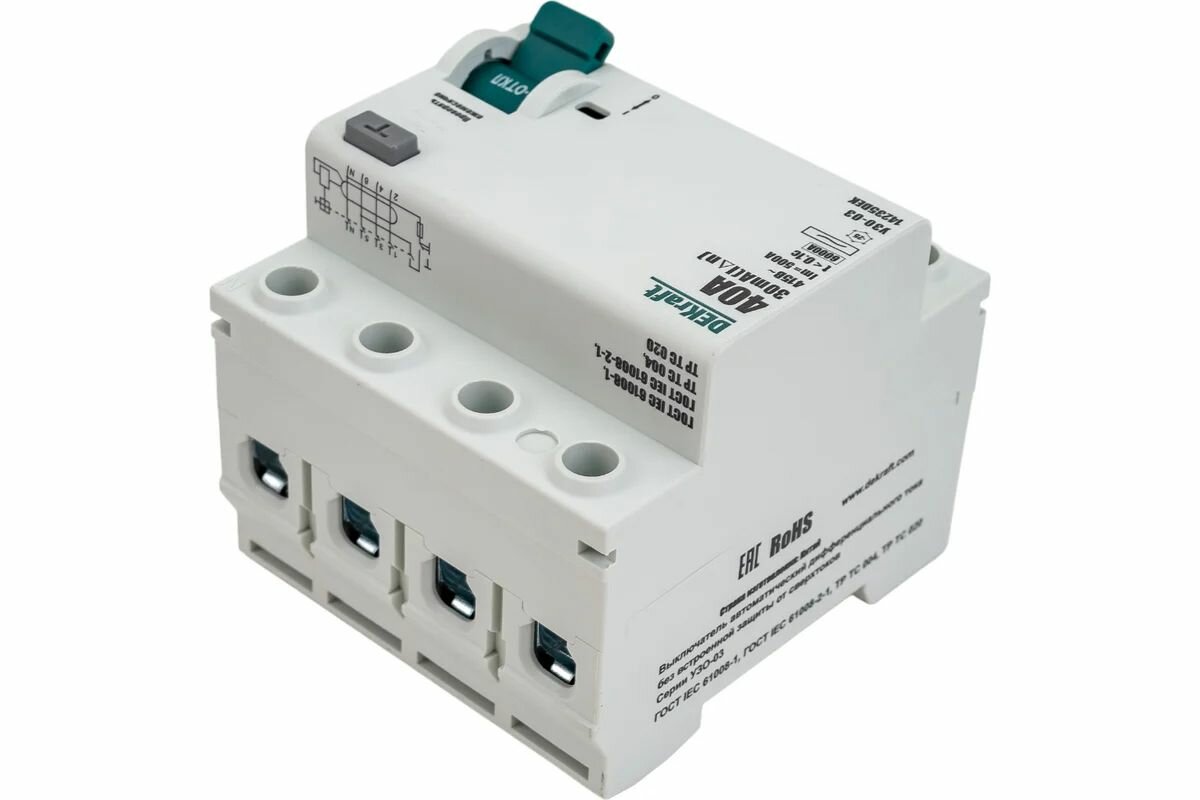 Устройство защитного отключения УЗО 4-пол. 40А 30мА тип AC, УЗО03-6кА 14235DEK DEKraft интересное: