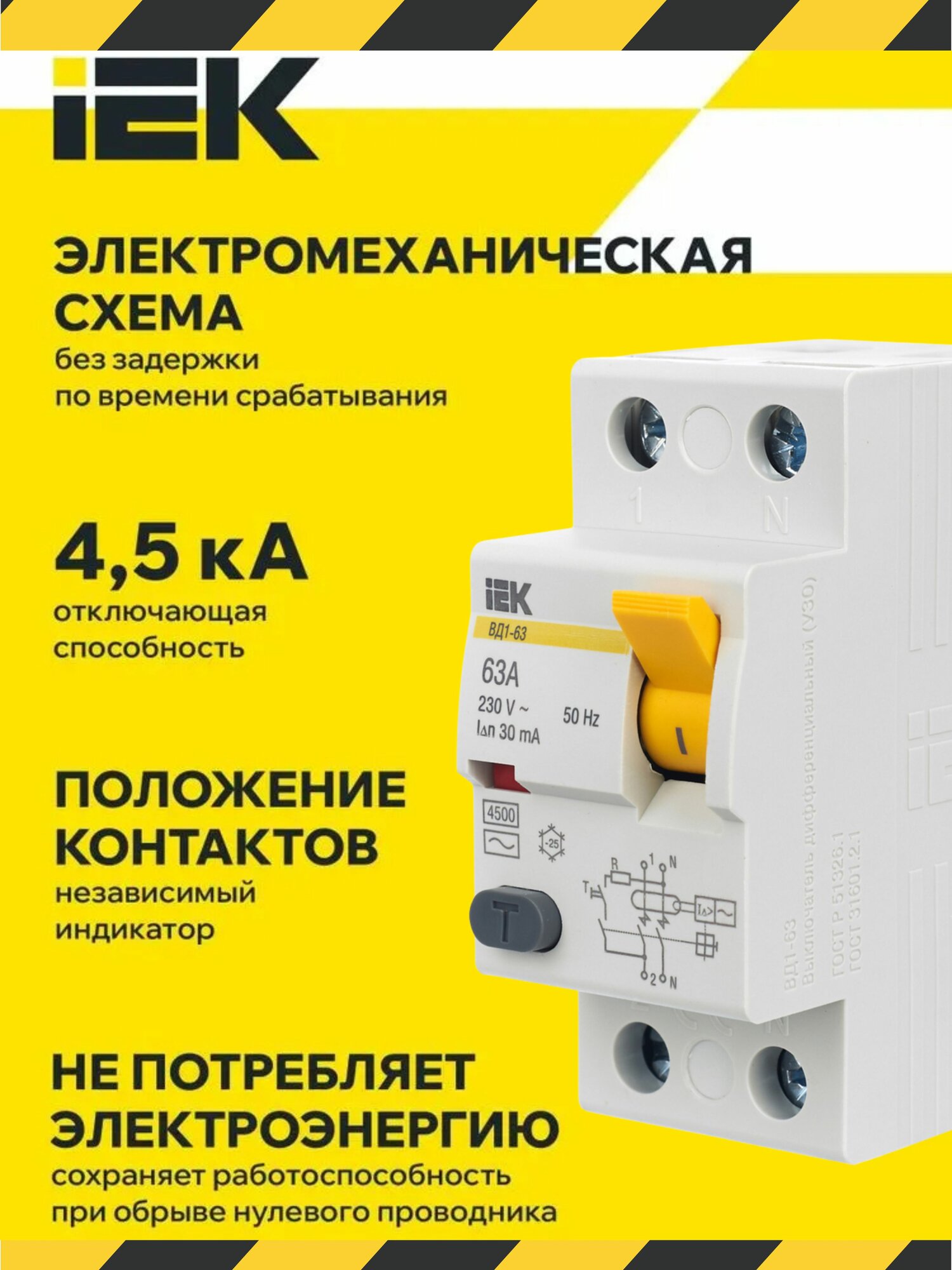 УЗО выключатель дифференциальный ВД1-63 2Р 63А 30мА IEK MDV10-2-063-030 интересное: