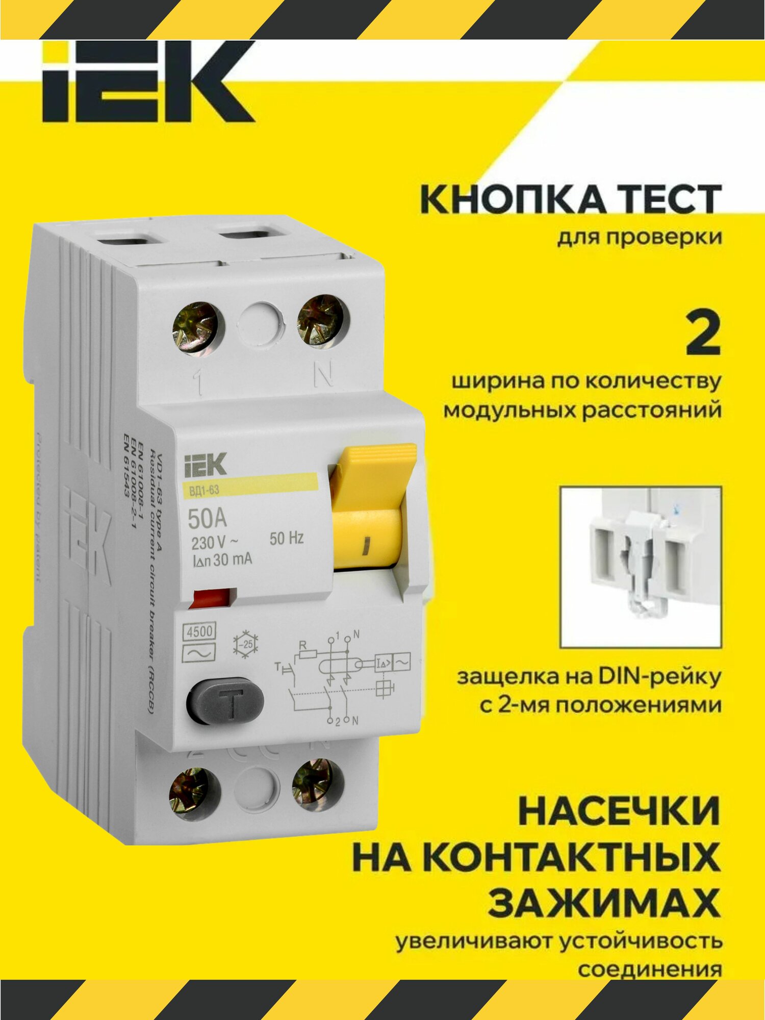 УЗО IEK MDV10-2-050-030, 1 модуль, 2 полюса, номинальный ток 50 A интересное: