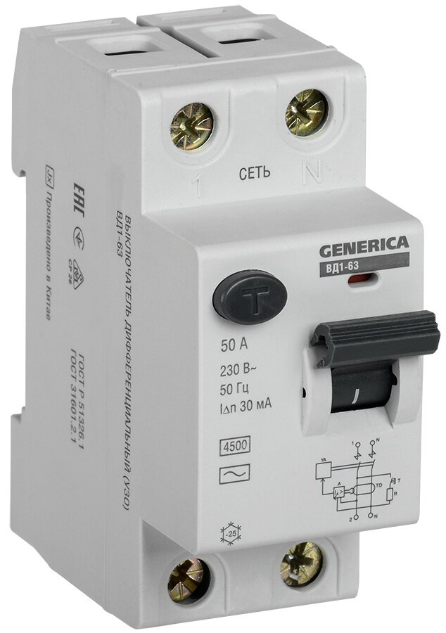 УЗО выключатель дифференциальный ВД1-63 2Р 50А 30мА GENERICA интересное: