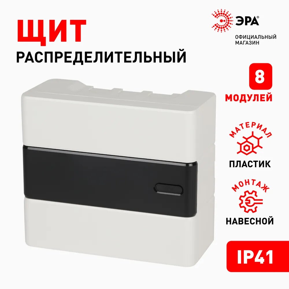 Щит распределительный навесной ЭРА ЩРН-П-08 Trend BOXS-08-p-s-t пластиковый с дверцей IP41, 231х200х104 мм интересное:
