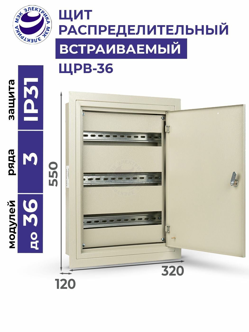 Купить Щит распределительный встраиваемый электрический ЩРв-36 IP31 550х320х120 металлический корпус