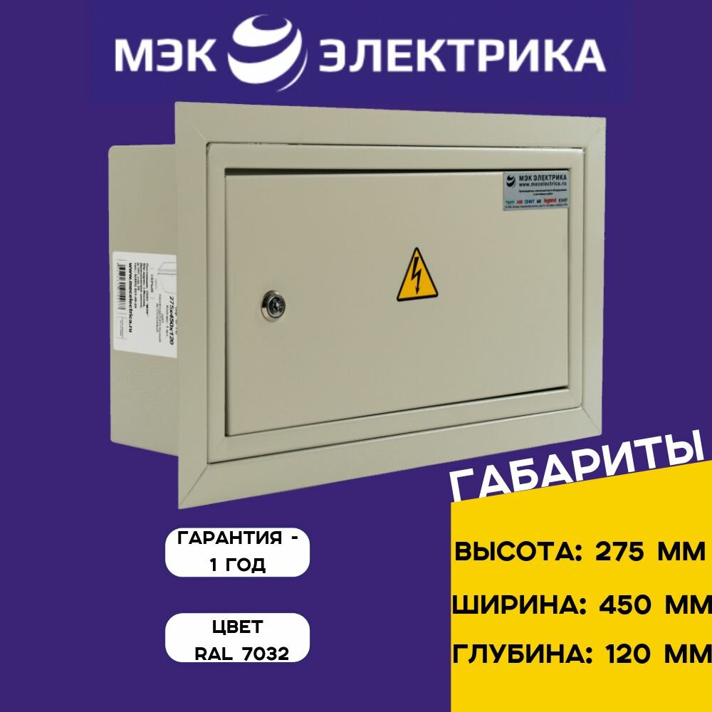 Щит распределительный встраиваемый на 9 модулей ЩРВ-9 275х320х120 металл