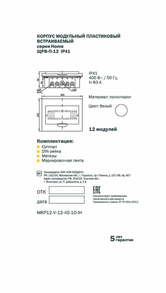 СохранитьЩит распределительный встраиваемый IEK Home ЩРВ-П-12 12 модулей IP40 пластик интересное: