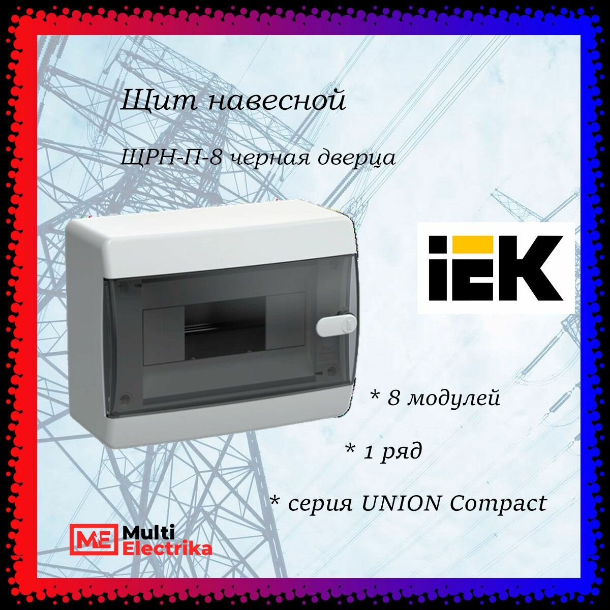 Купить Щит пластиковый навесной ЩРН-П-8 IP41, 8 модулей, черная прозрачная дверь UNION Compact IEK