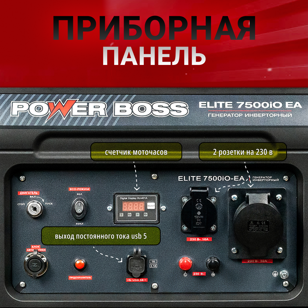 Купить Инверторный генератор Power Boss ELITE 7500iO-EA 7.5 кВт 460 см3, 25 л, электростарт AVR коннектор автоматики, USB 5В