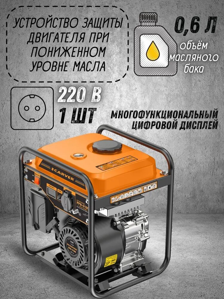 Генератор бензиновый CARVER PPG-3100i инверторный (2.5 кВт, AVR, 230 В, бак 6 л, объем двигателя 208 куб. см) интересное: