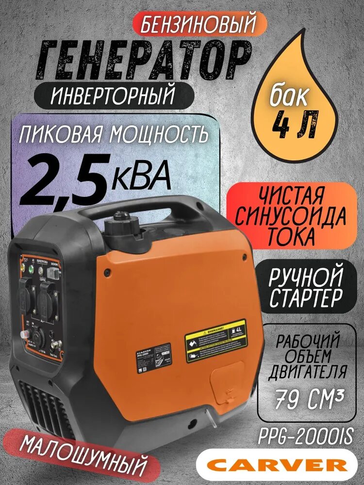 Генератор бензиновый CARVER PPG- 2000IS инверторный (2 кВт, AVR, 220 В, бак 4 л, объем двигателя 79 куб. см, ручной стартер, режим "эконом") интересное: