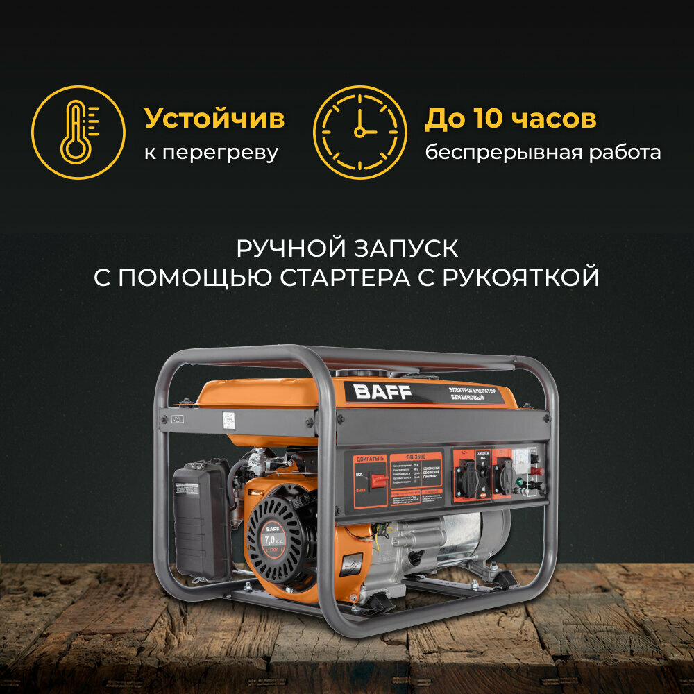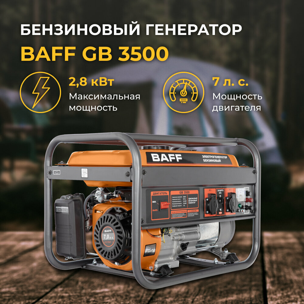 Купить Бензиновый генератор BAFF GB 3500, объем бака 15 л, мощность 2,8 кВт