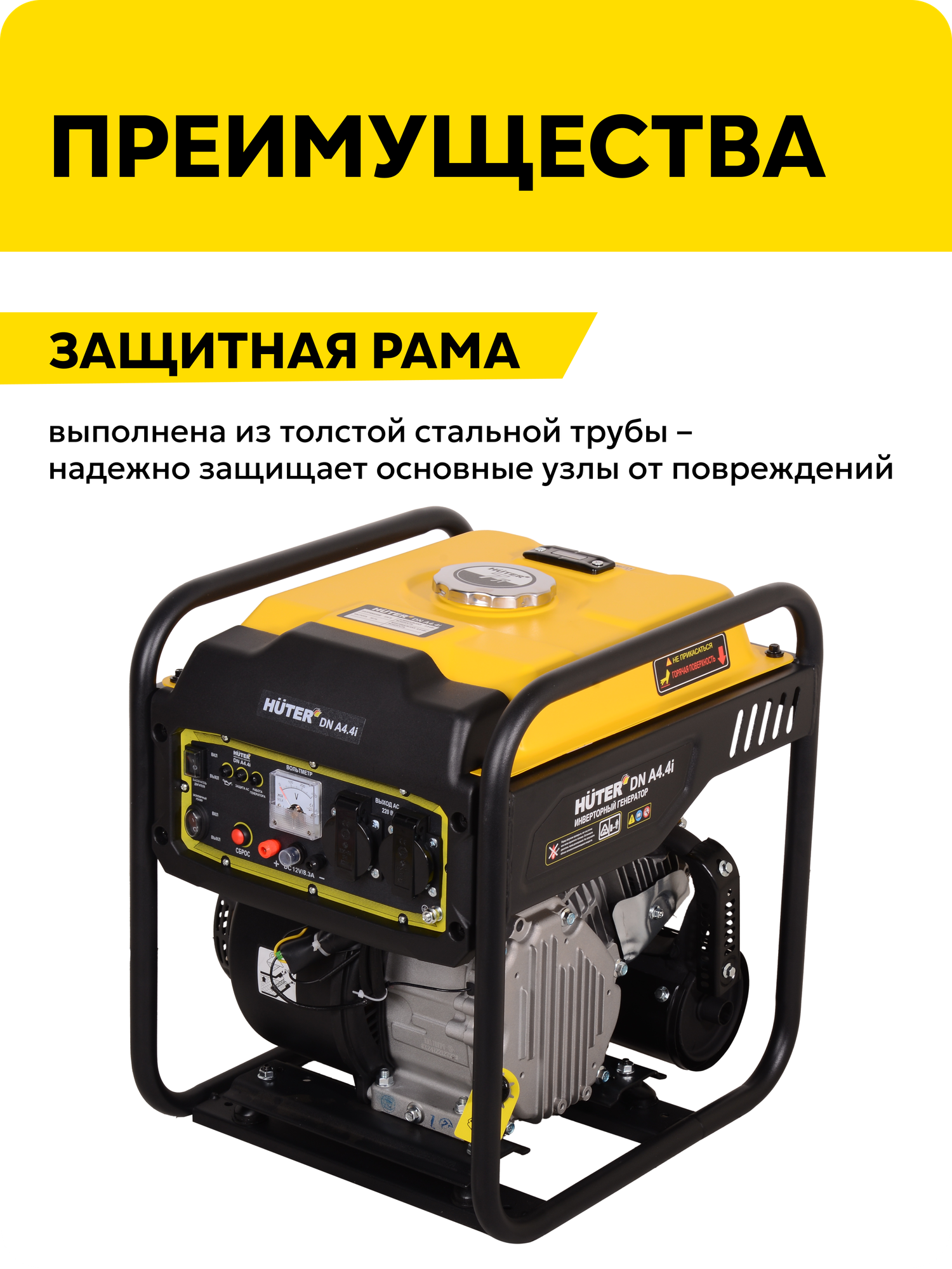 Купить Инверторный генератор DN А4,4i Huter, бензин АИ-92, 3,8 кВт, 220 В, бак – 7 л
