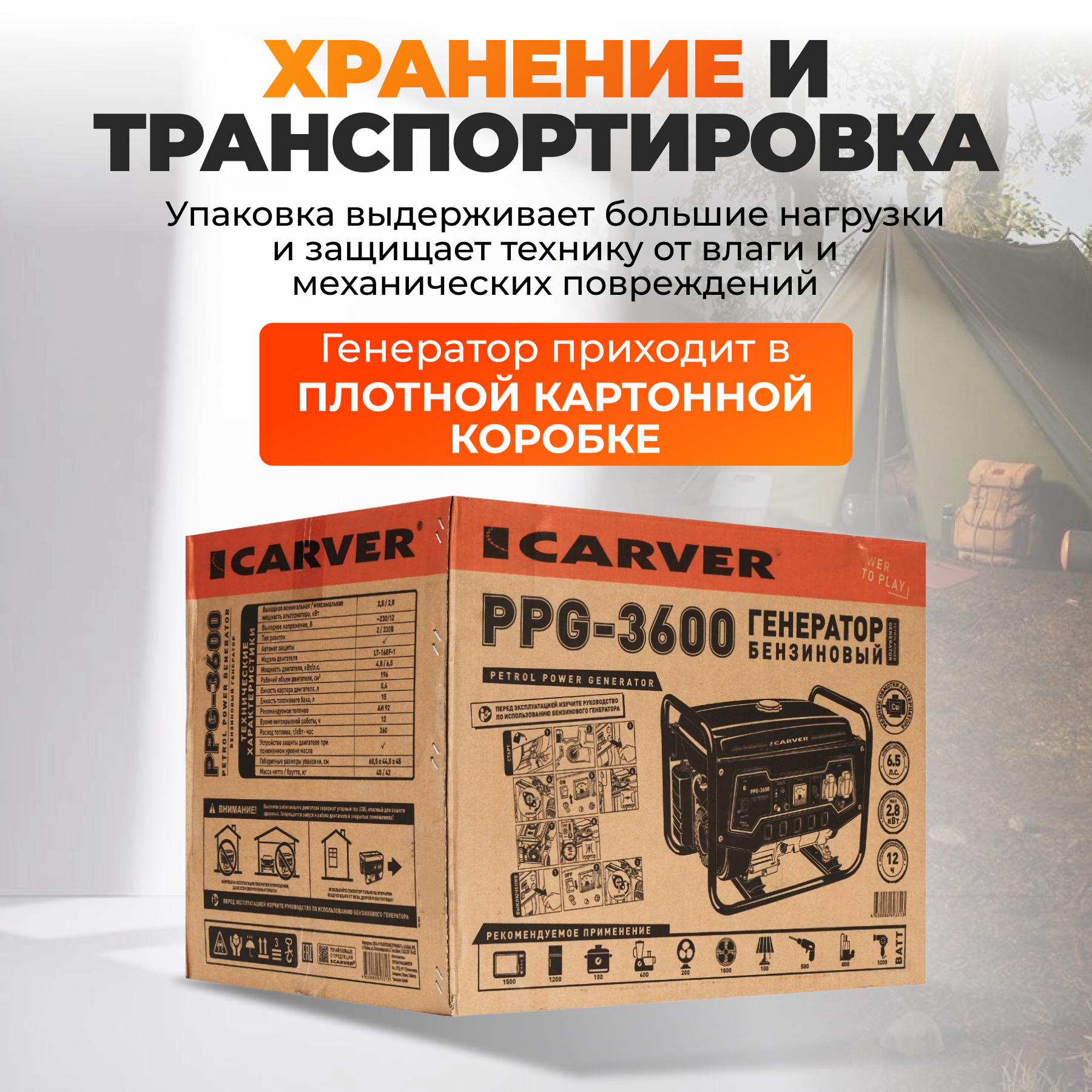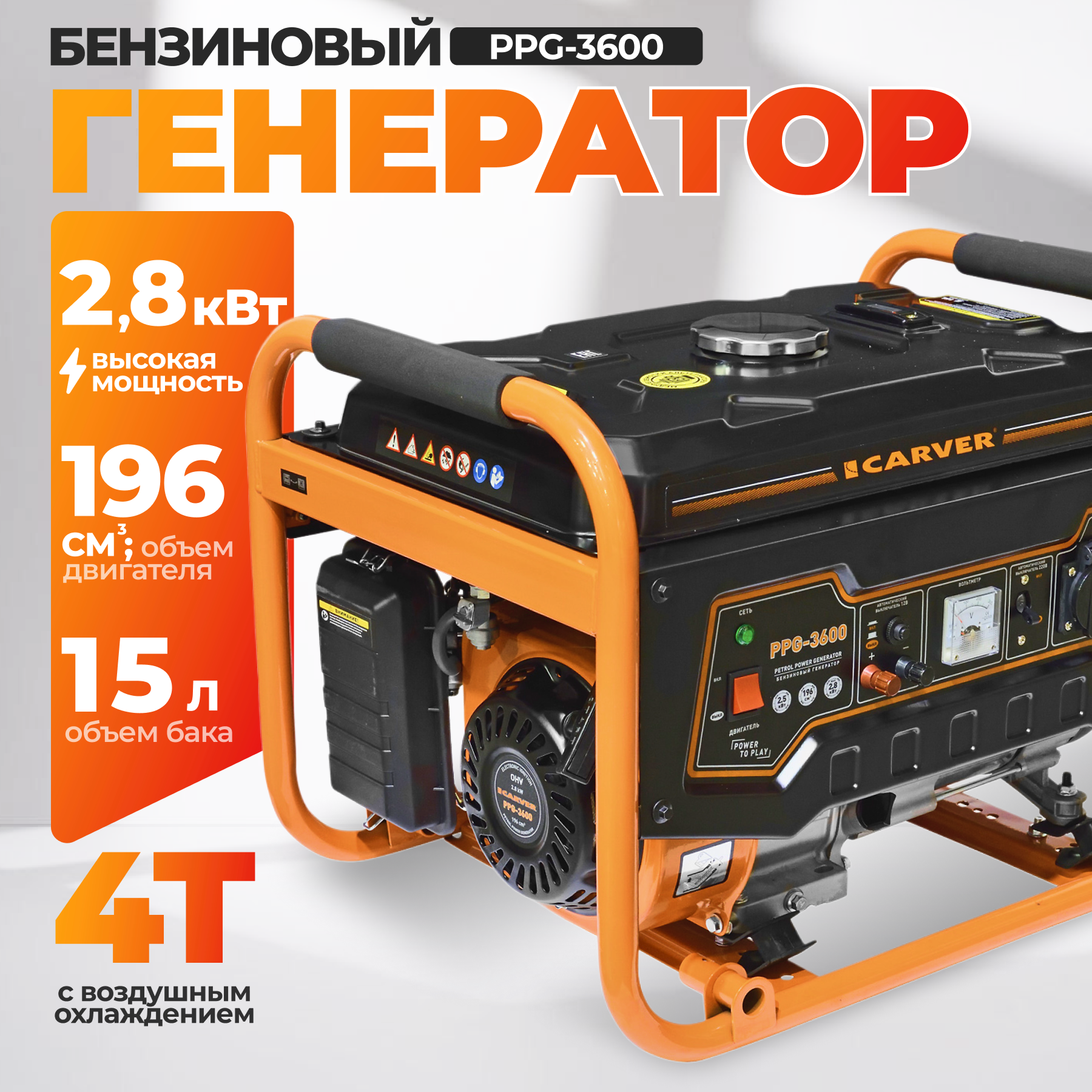 Купить Генератор бензиновый Carver PPG-3600, 2800 Вт, синхронный, 1 роз, 220/12 В