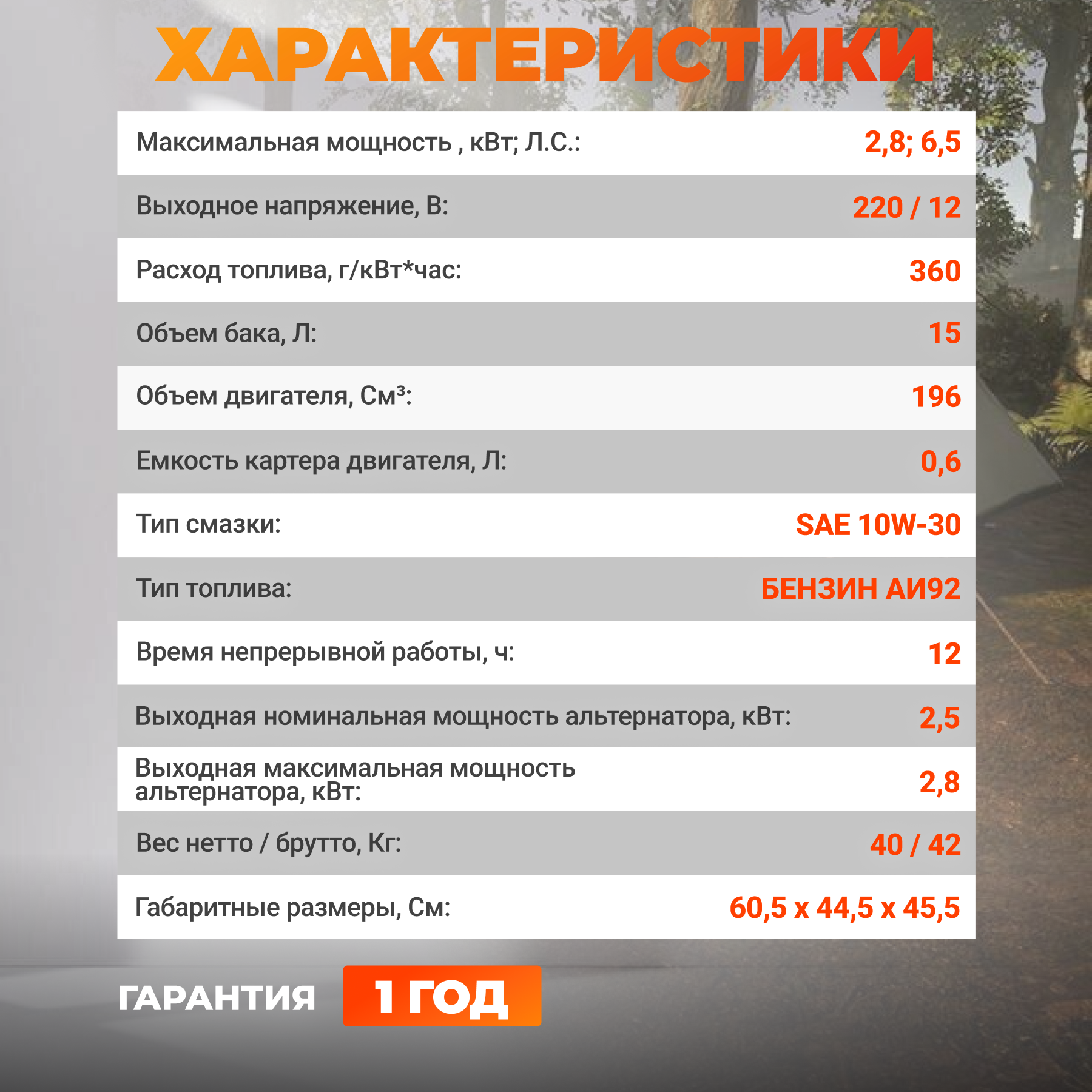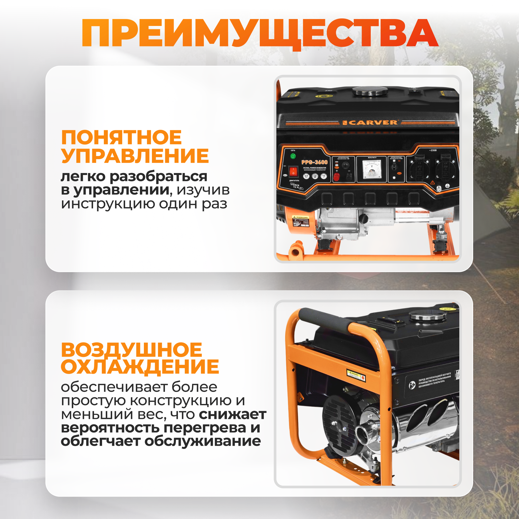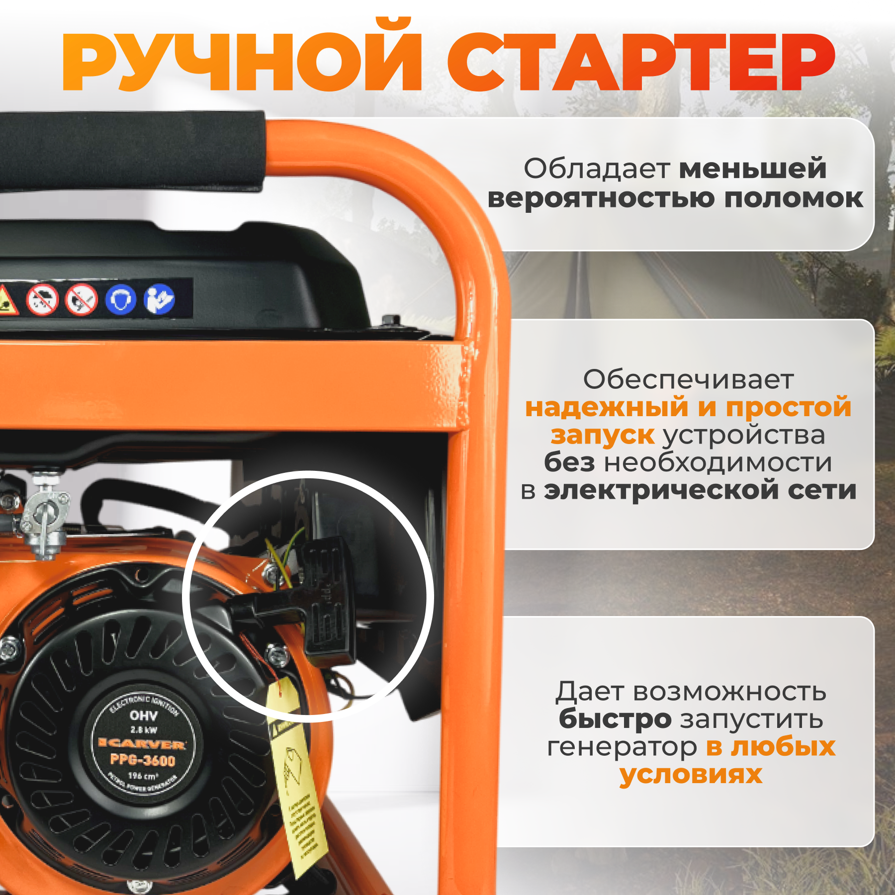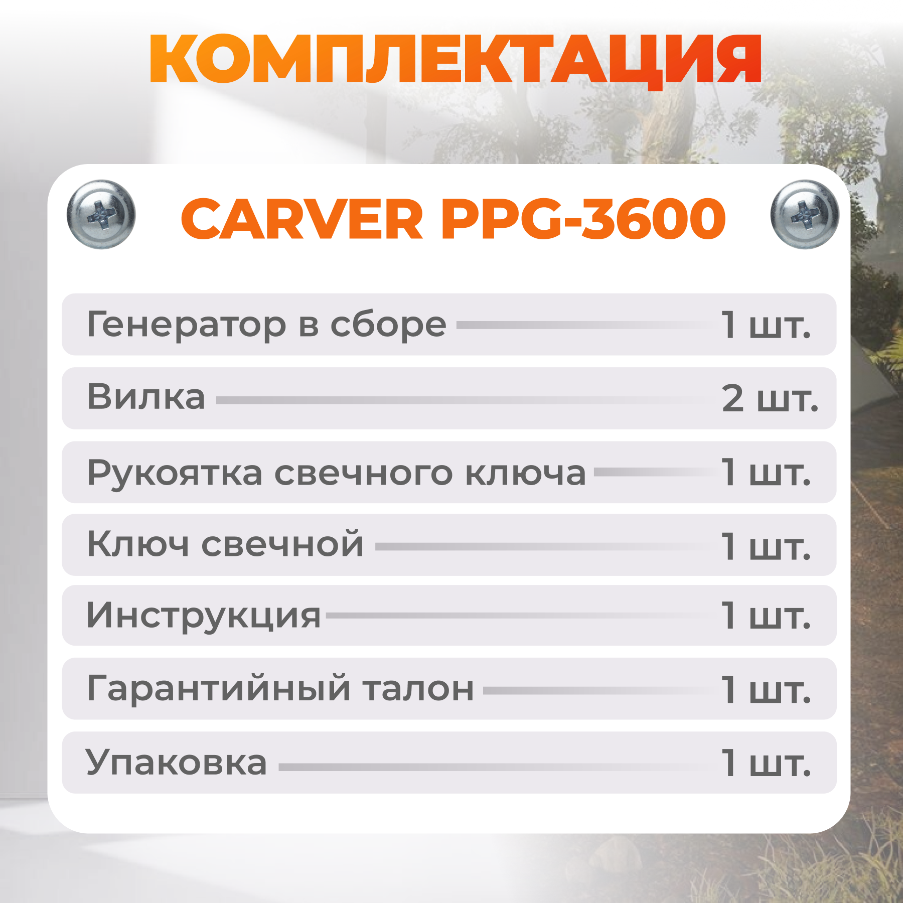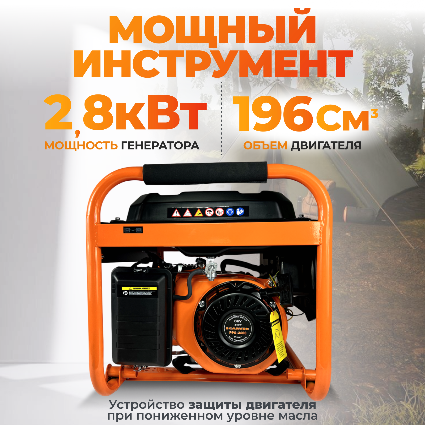 Генератор бензиновый Carver PPG-3600, 2800 Вт, синхронный, 1 роз, 220/12 В интересное: