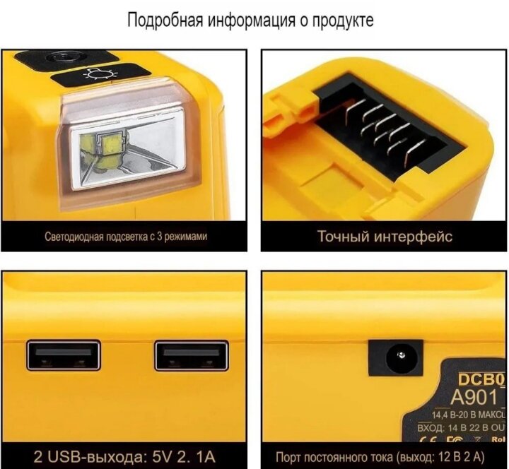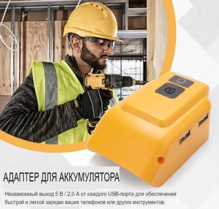 Сменный преобразователь источника питания для Dewalt( с фонариком) и 2 USB-портами интересное: