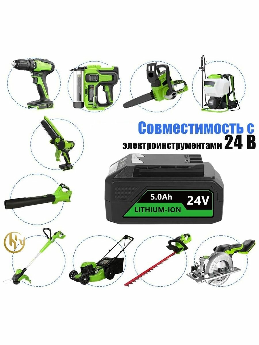 Аккумулятор Greenworks 2938407 24 V 5 Ah Li-Ion, влагозащитный, быстрая зарядка интересное: