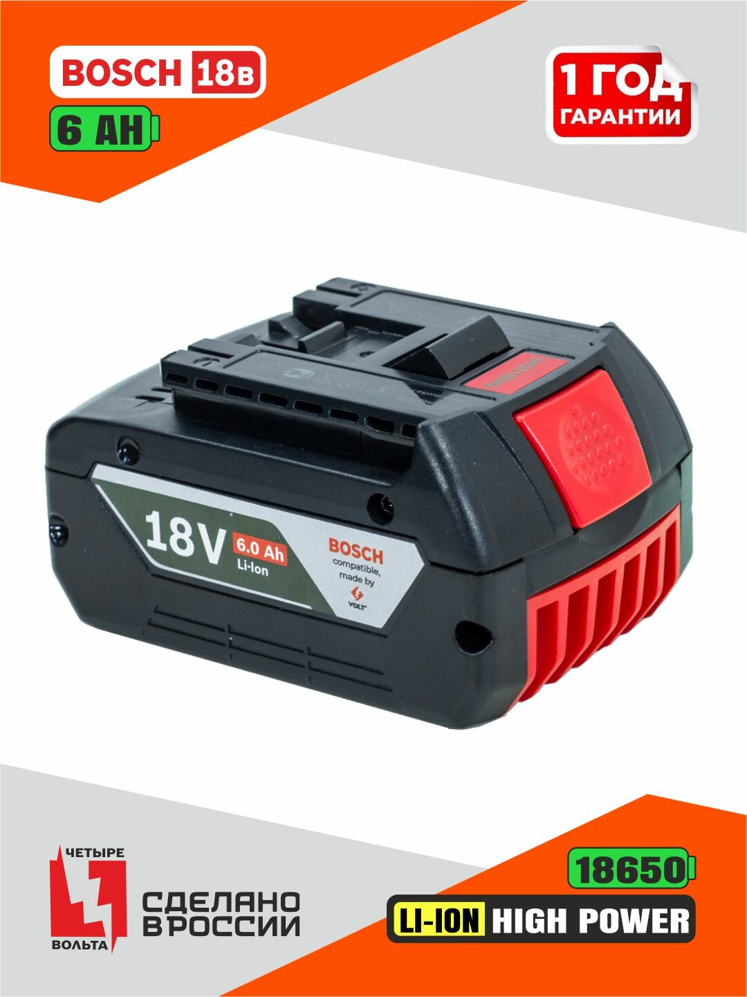 Аккумулятор для BOSCH 18V Li-Ion 6.0 Ah GBA 18V c индикацией заряда АКБ БОШ без эффекта памяти интересное: