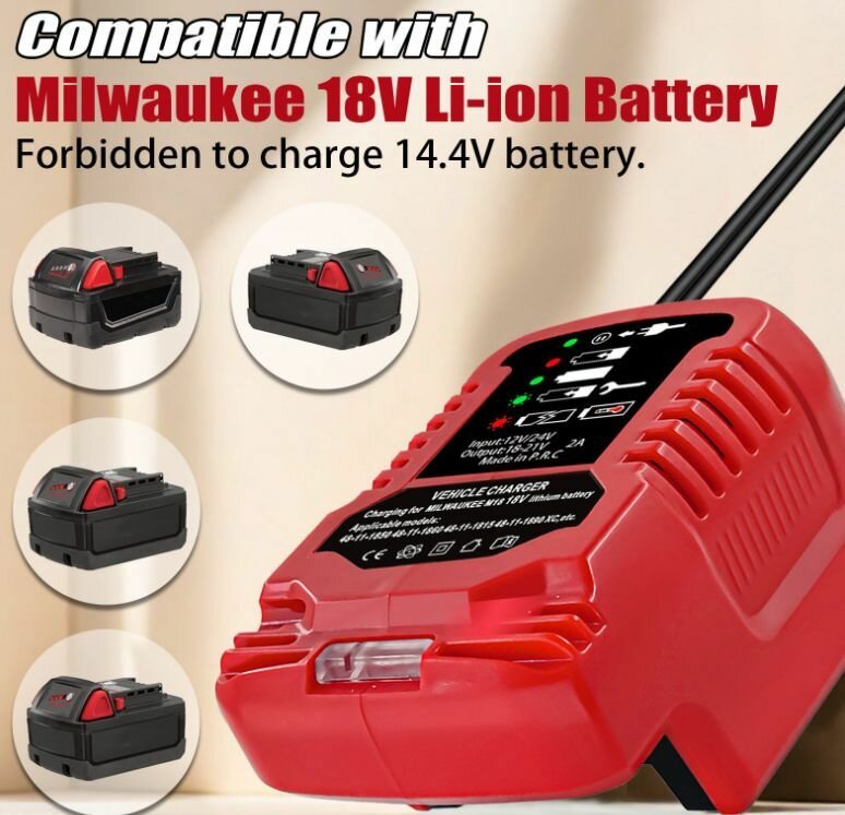 Автомобильное мини-зарядное устройство для литий-ионных аккумуляторов Milwaukee 18 В для использования в автомобилях интересное: