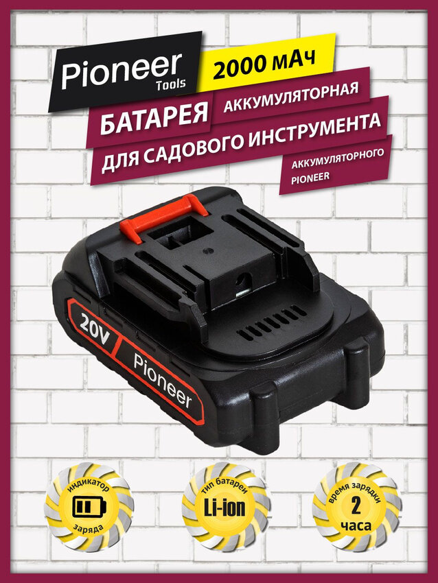Батарея аккумуляторная Pioneer BT-M20V2sl-01 для садовых триммеров, кусторезов Pioneer, емкость 2000 мАч, 20В интересное: