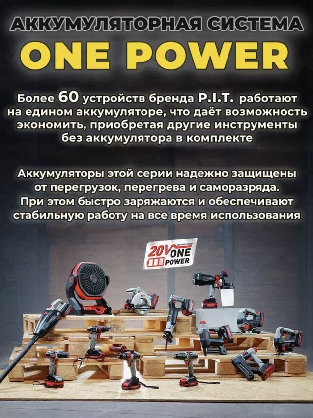 Набор P.I.T. OnePower аккумулятор PH20-2.0 (2 Ач) и Зарядное устройство PH20-2.4A интересное: