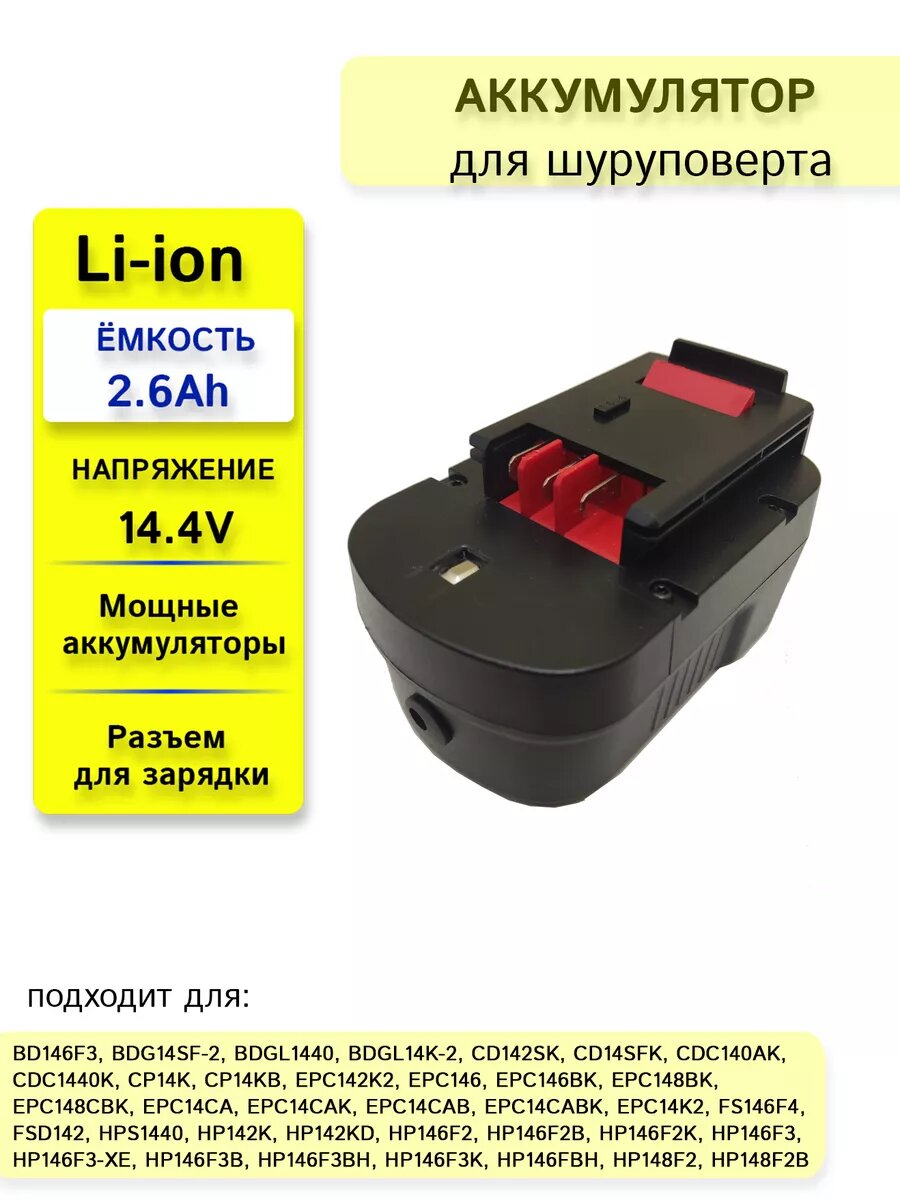 Аккумулятор для Black & Decker 14.4V 2.6Ah Li-ion интересное: