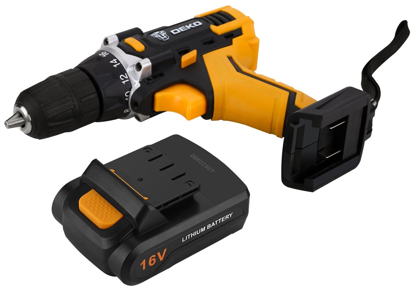 Аккумуляторная дрель-шуруповёрт DEKO 16В DKCD16FU-Li, 32 Нм, 1х1.5 Ач, з/у интересное: