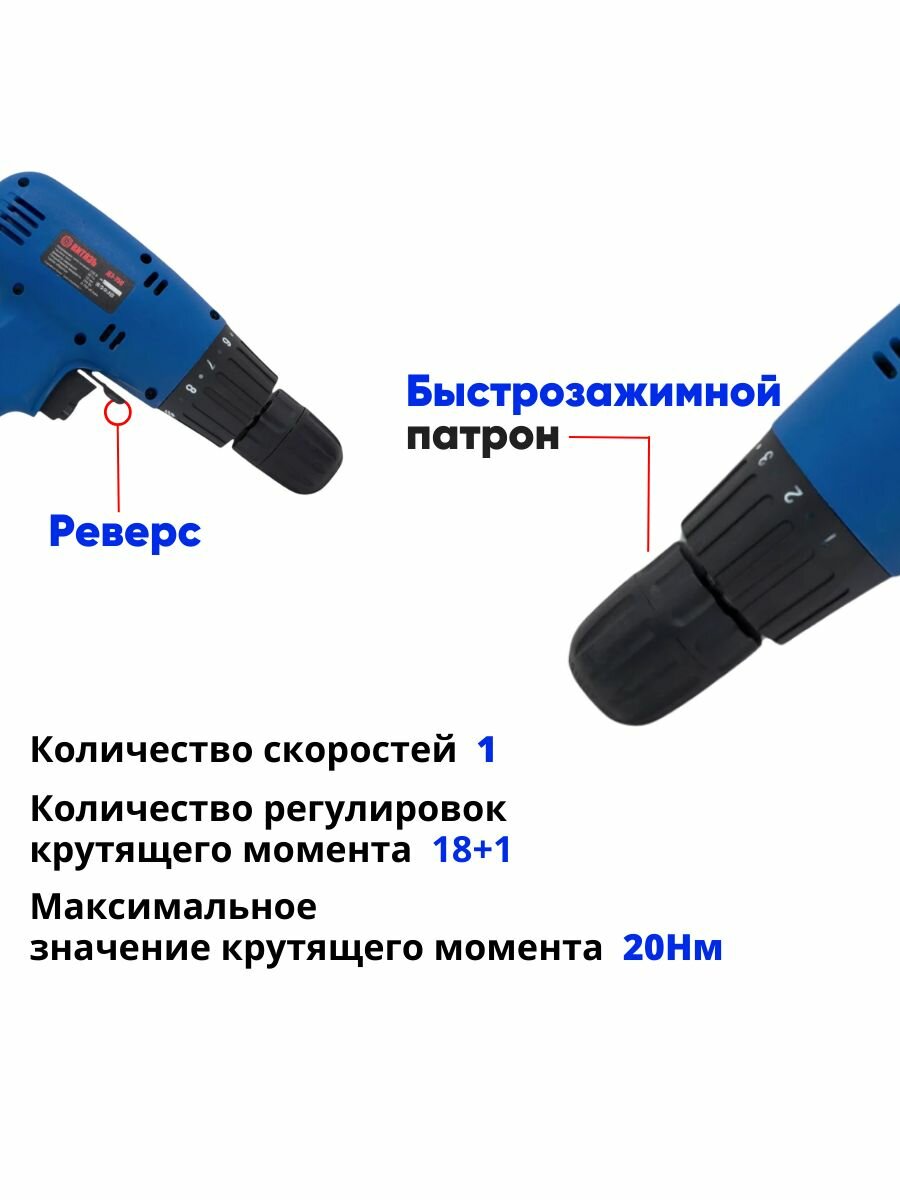 Сетевой дрель шуруповёрт Витязь ДЭ-750, 750Вт, быстрозажимной патрон интересное: