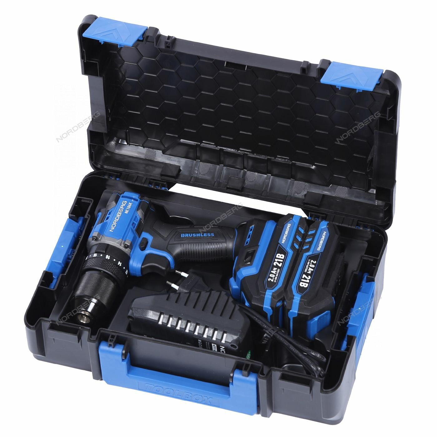 Купить NORDBERG NE106K Шуруповерт аккумуляторный макс. диам. сверла 13 мм, 21 В, 70 Нм с 2 аккумуляторами и зарядным уст-вом