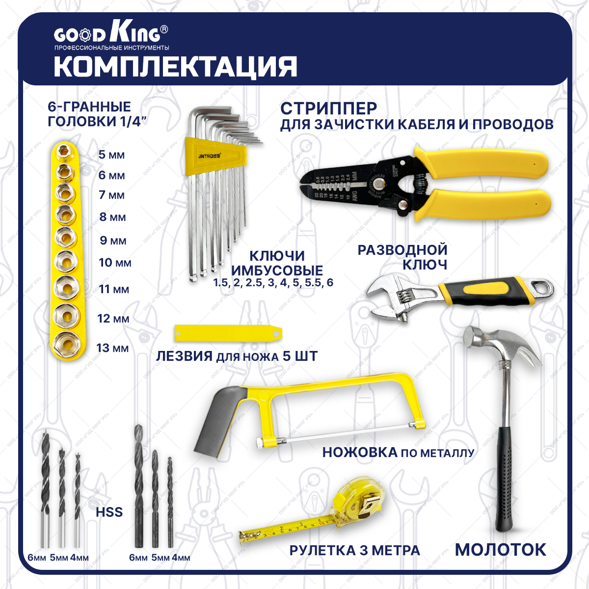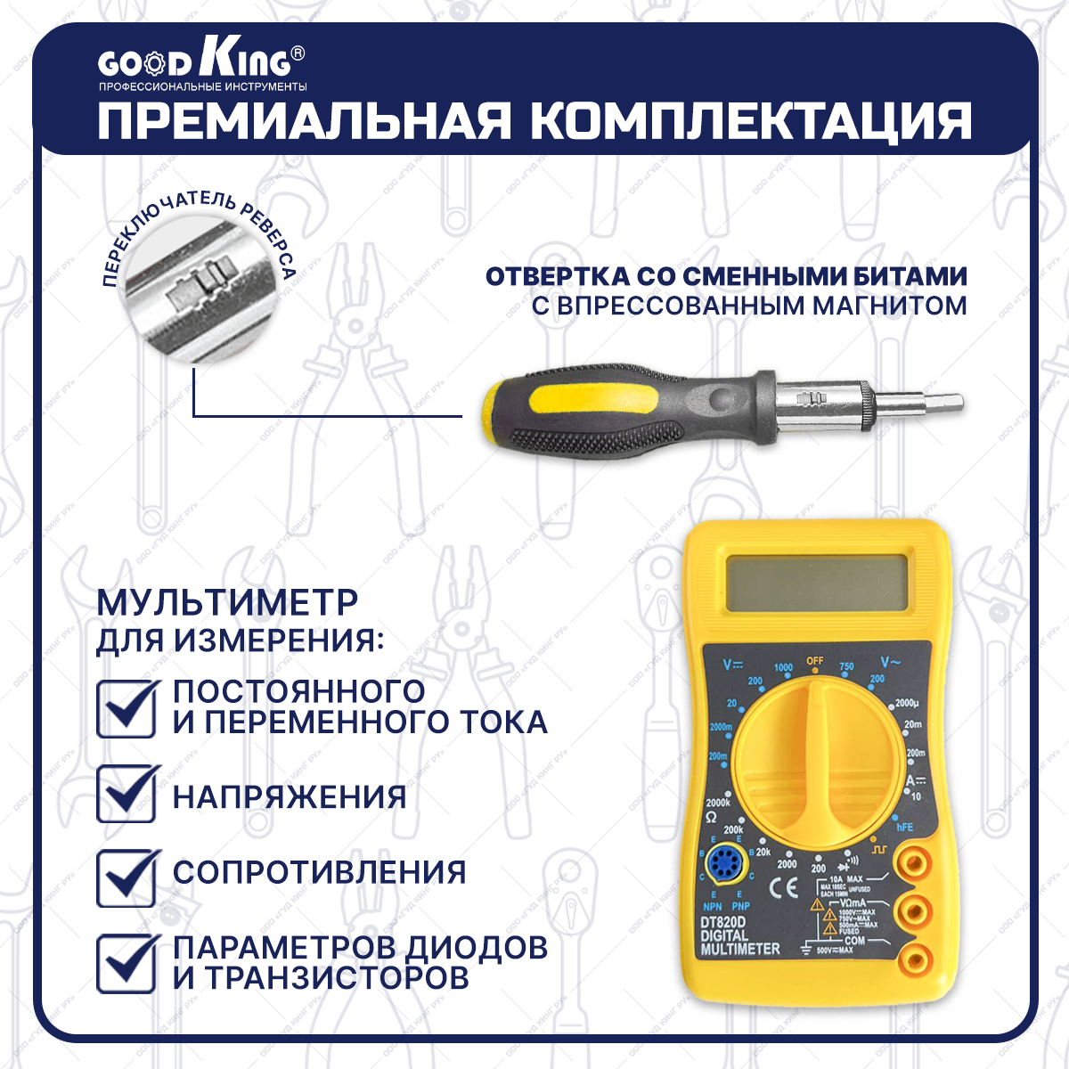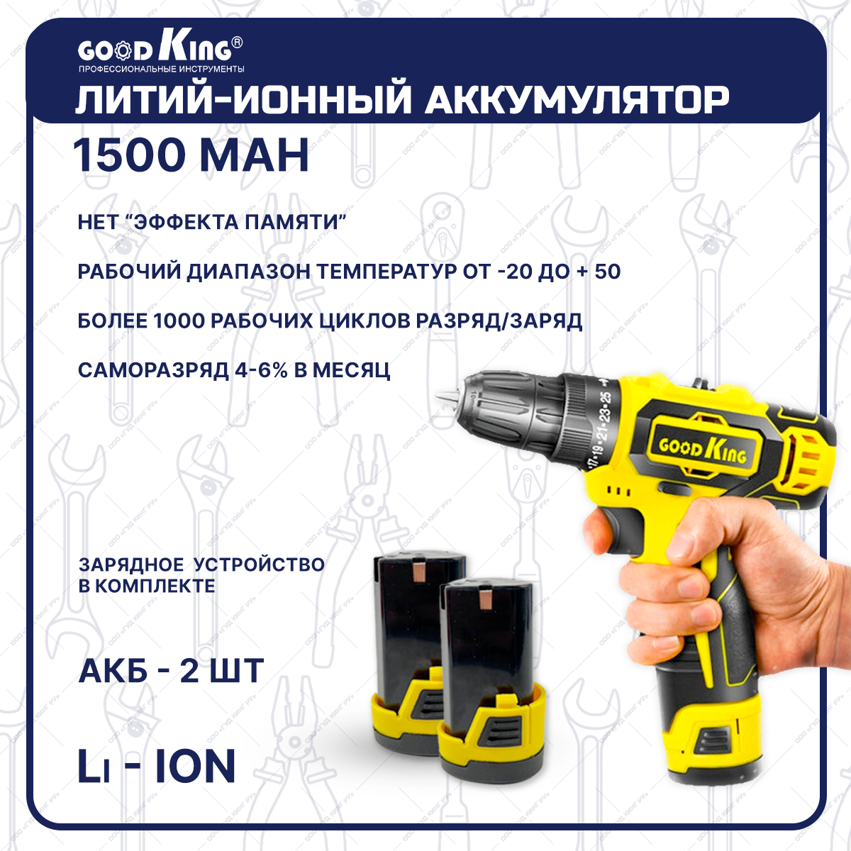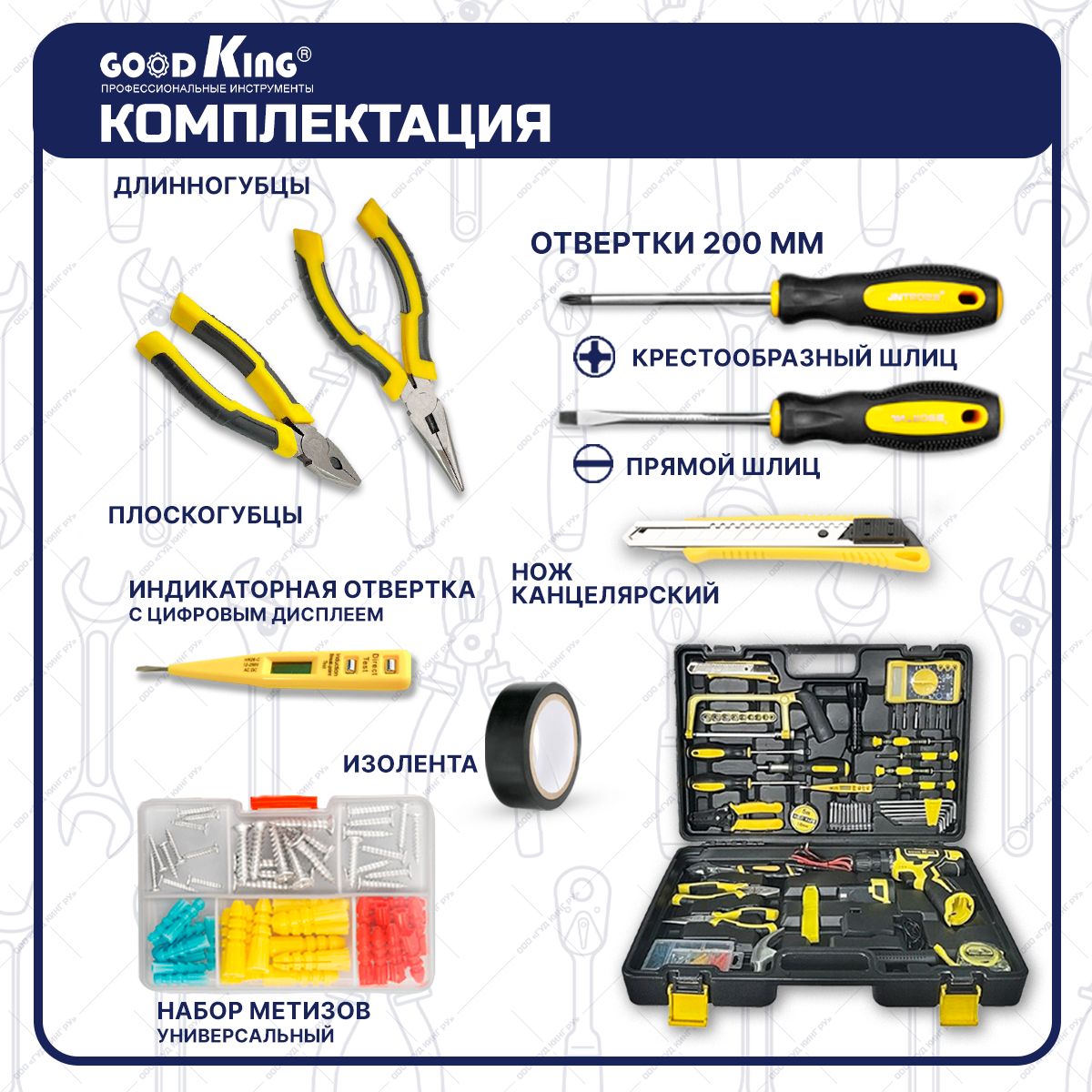 Шуруповерт аккумуляторный GOODKING EC-1202128, 128 предметов Набор инструментов для дома Li-ion, 2 АКБ, 12В, 20Нм, 1.5Ач, з/у интересное: