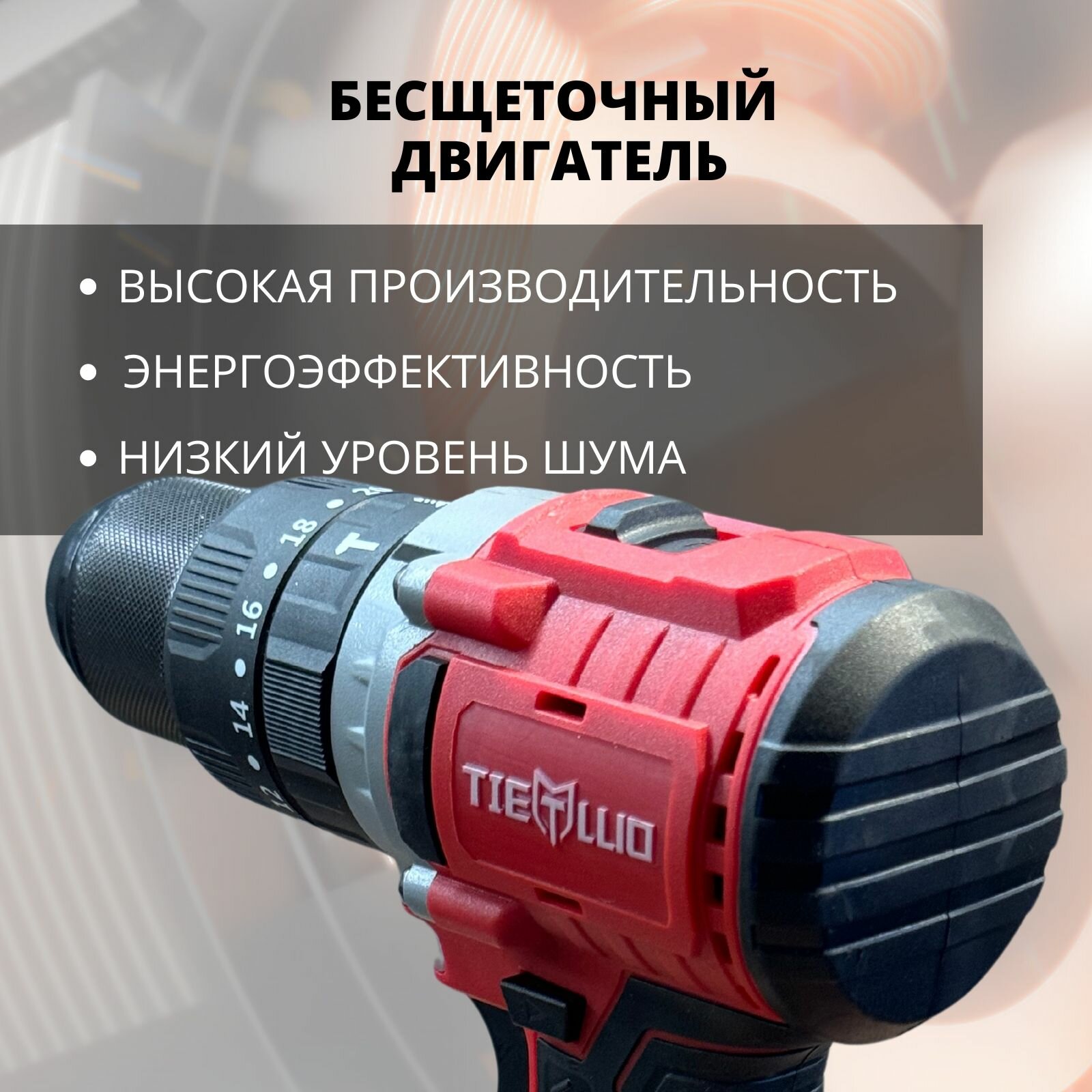 Купить TIELLIO 13TD Шуруповерт ледобур ударный бесщеточный аккумуляторный электрический дрель, 21В, 95Нм, 2 АКБ LI-ION, 6Ач