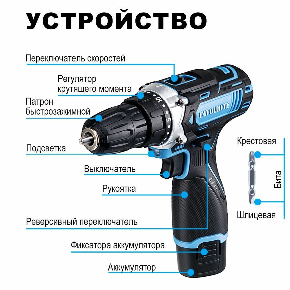 Шуруповерт аккумуляторный FAVOURITE ДАБ 1201, (12В, 2Ач, 22Hm, LED подсветка) интересное: