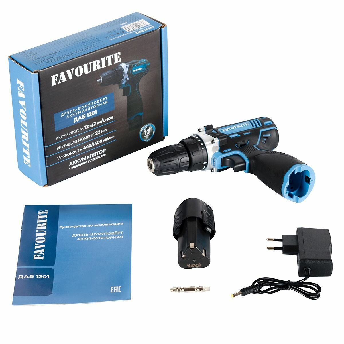 Дрель-шуруповёрт аккумуляторная Li-ion FAVOURITE DC 1201 (12В, 2Ач, 22Hm, LED подсветка)