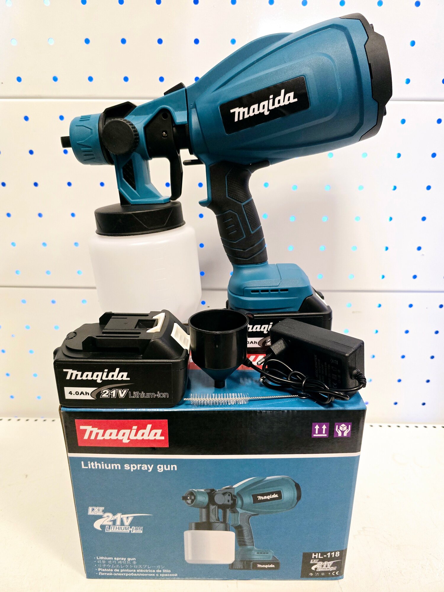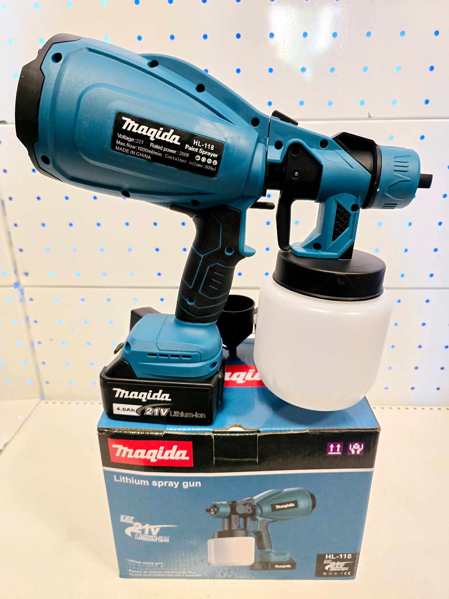 Купить Аккумуляторный краскопульт Magida HL-118 HVLP технология, 800 мл, 21В 2Х4Ач