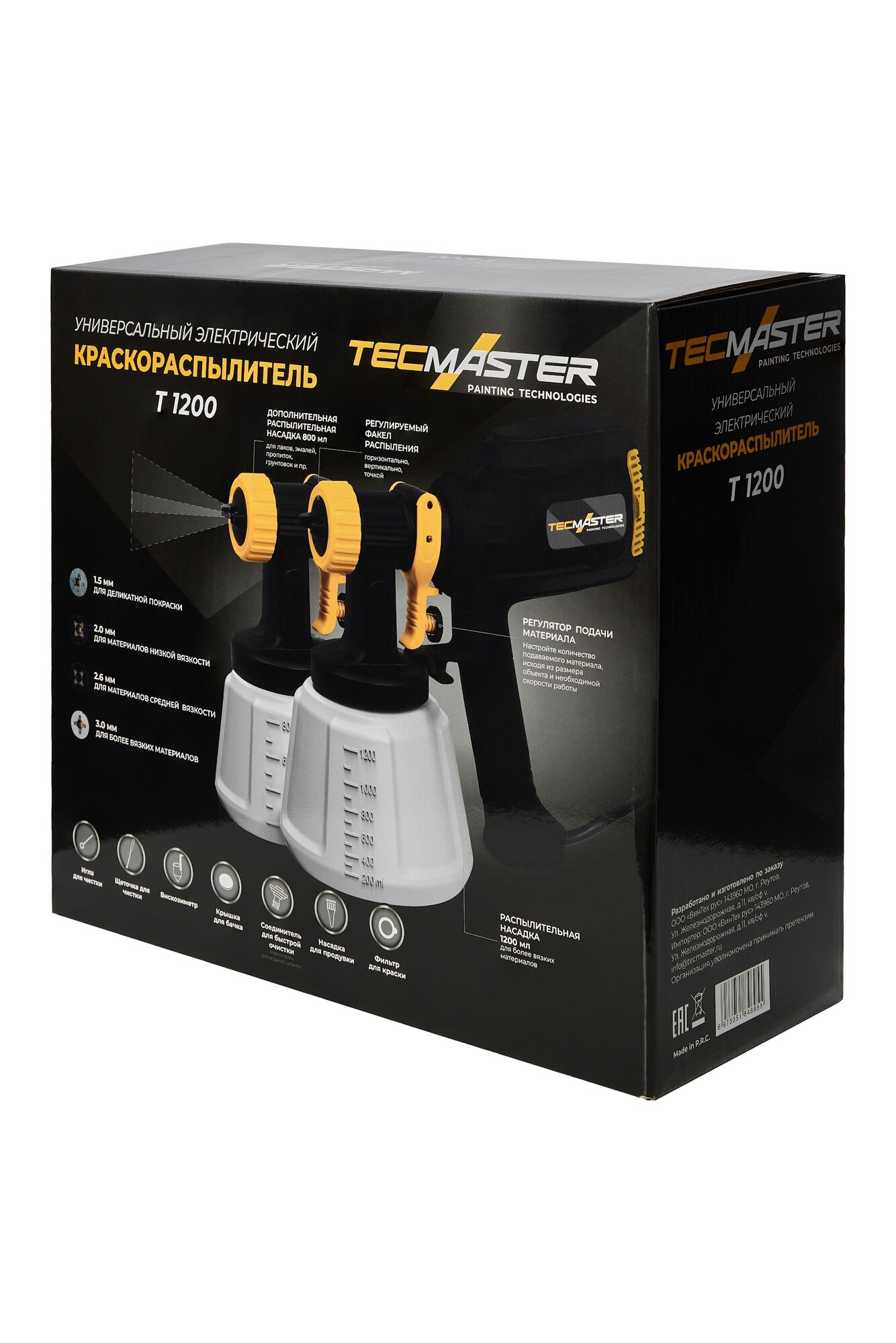 Купить Краскопульт электрический TECMASTER T1200 с аксессуарами с латунными форсунками для покраски заборов, стен, потолков