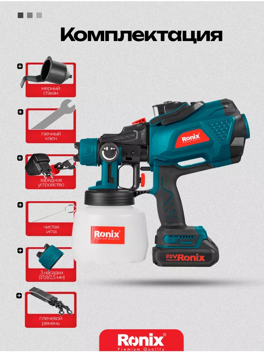 Краскопульт аккумуляторный Ronix 32000 об/мин, 1200 мл, с подсветкой LED, 50-60 DIN интересное: