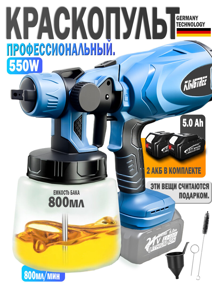Купить Kingtree Tool Электрический пистолет-распылитель 800 мл, простая регулировка распыления и очистки, (2 батареи)