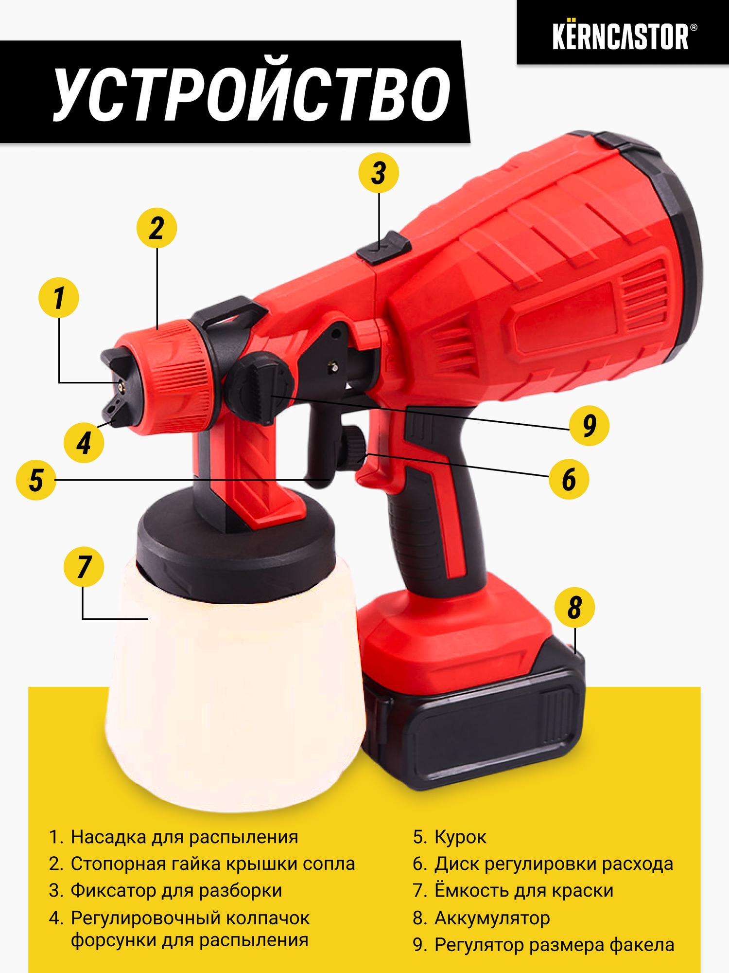 Краскопульт аккумуляторный KERNCASTOR для покраски, пульверизатор для краски интересное: