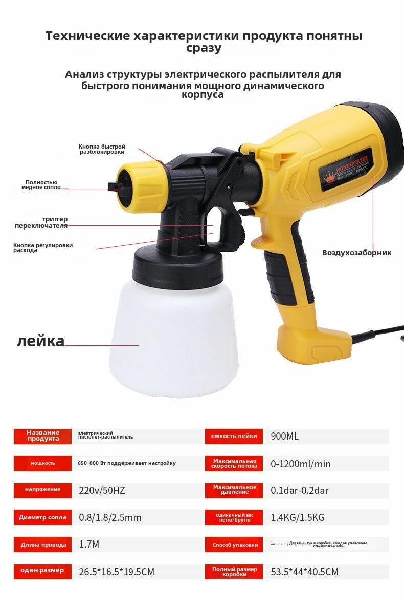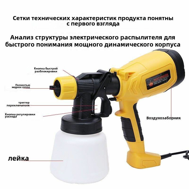 Электрический распылительный пистолет с большой емкостью, бак на 1400 мл | Два заряжable аккумулятора интересное: