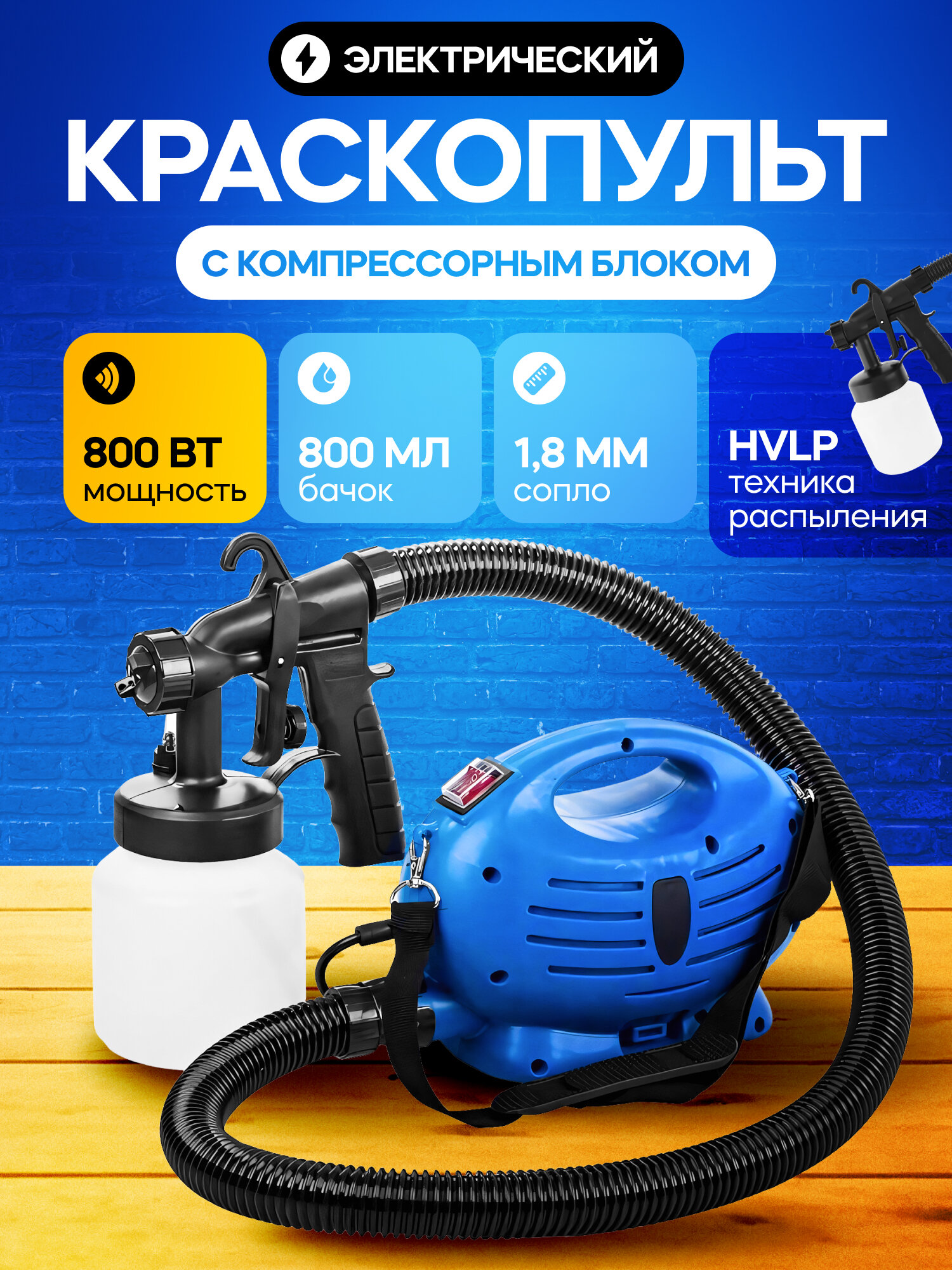 Краскопульт электрический с компрессорным блоком EasyCoat Pro сопло 1,8мм, 800 Вт, 800мл интересное: