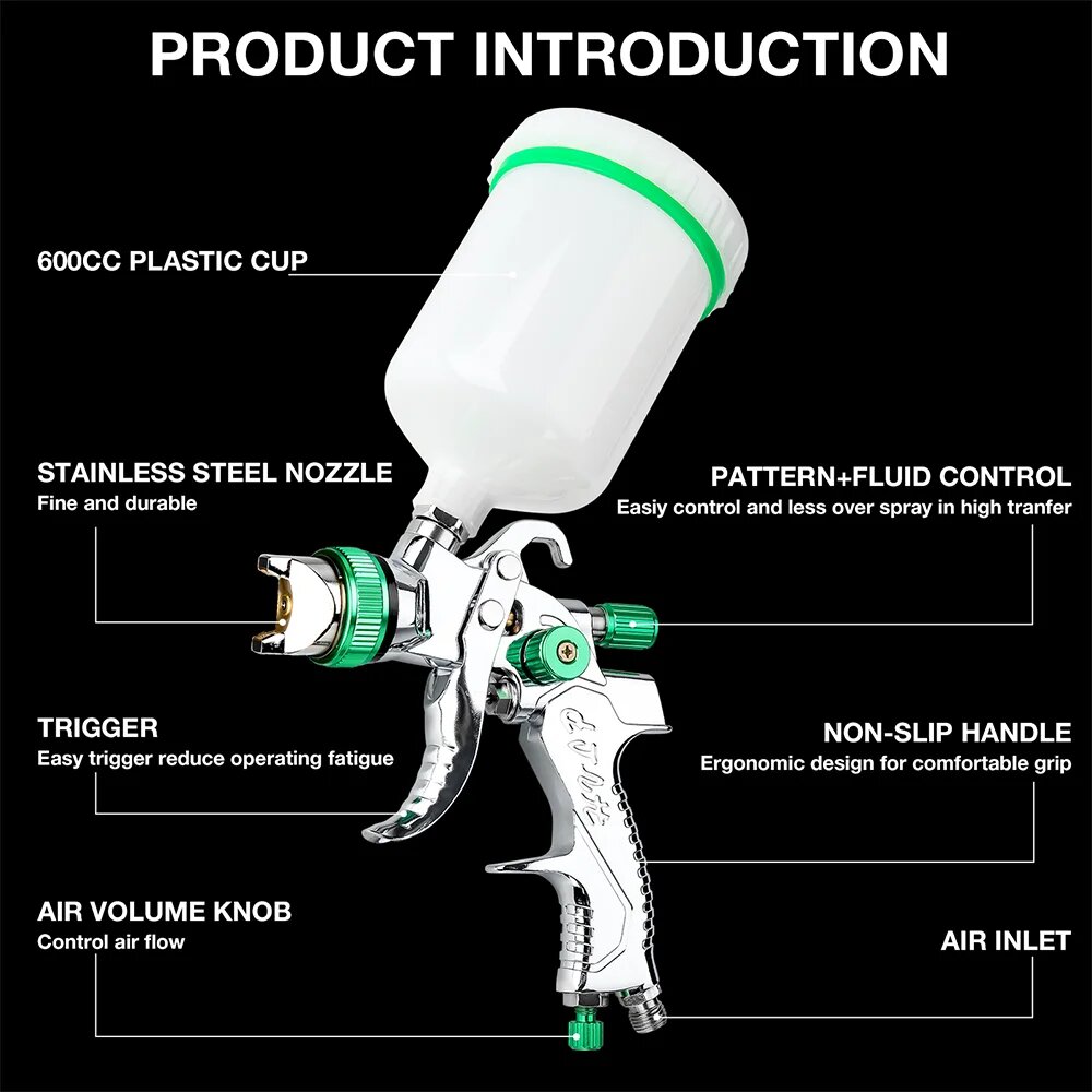 Купить Профессиональный пистолет-распылитель HVLP, краскопульт, 200ml/min, 1.4-1.7-2.0-2.5mm