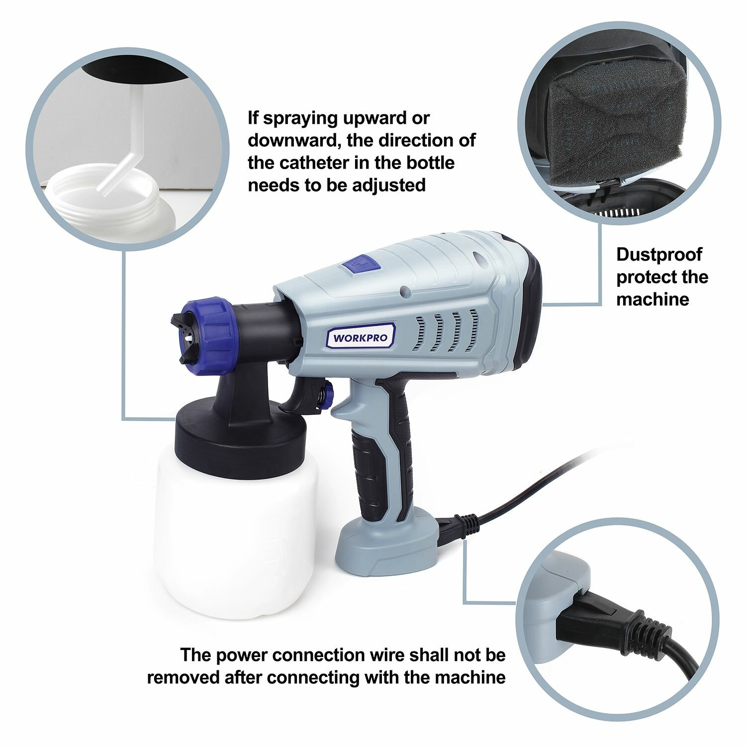 Электрический краскопульт WORKPRO 550W 800ML интересное: