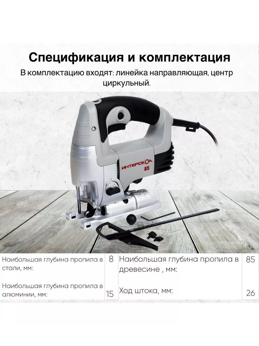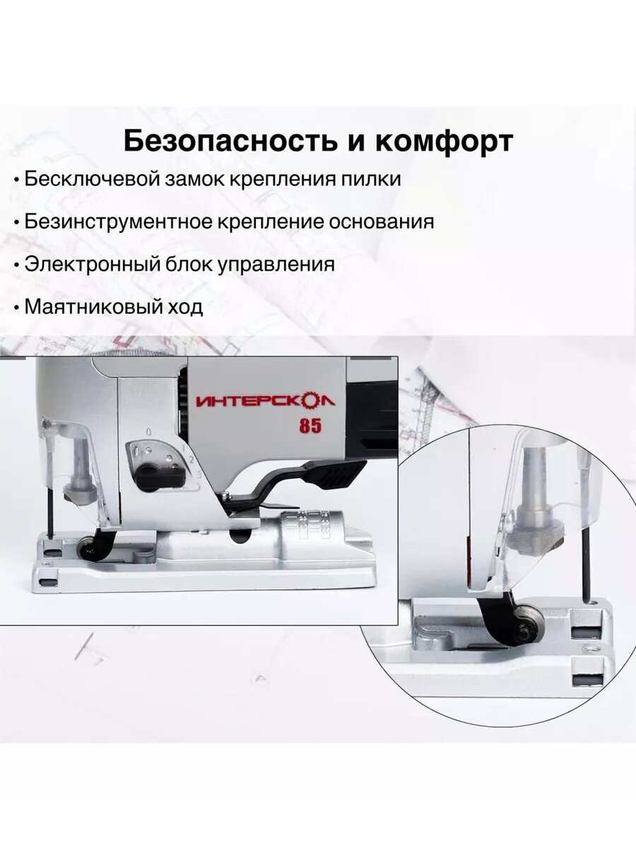 Лобзик ИНТЕРСКОЛ МП-85/600Э, 701 Вт, 3000 ход/мин, 85 мм 156.1.1.00 интересное: