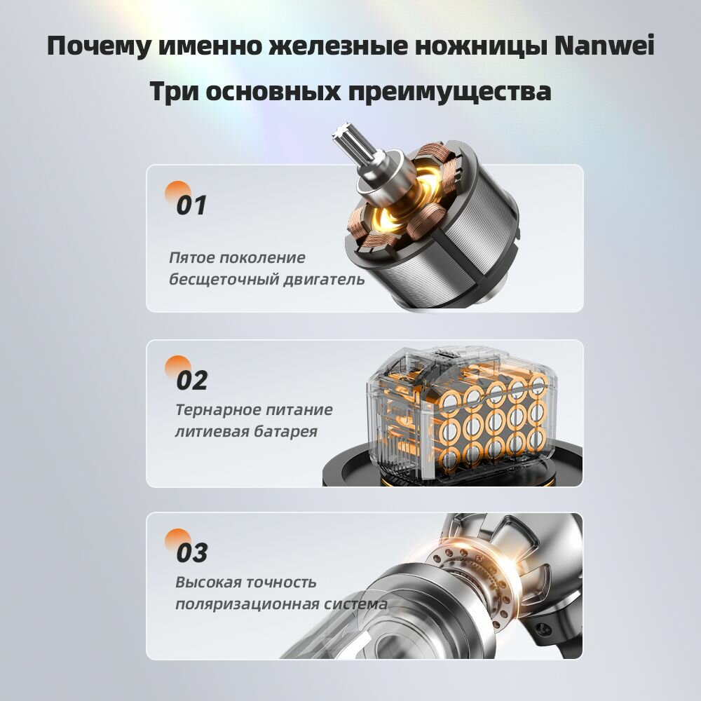 Электрические ножницы NANWEI с бесщеточным двигателем поддерживают прямую/кривую резку. интересное: