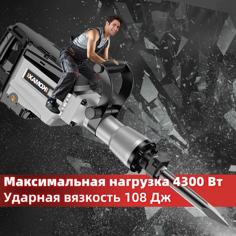 Отбойный молоток электрический, Мощность 4300 Вт, сила удара 108 Дж, с полным набором аксессуаров интересное: