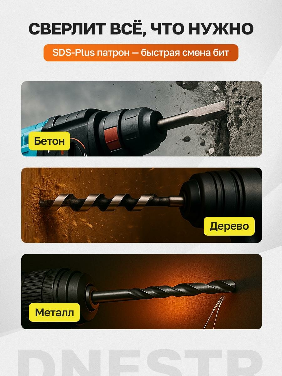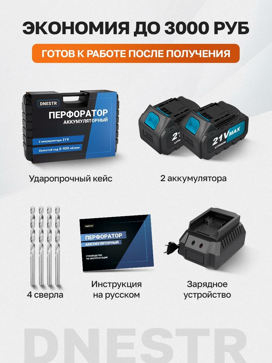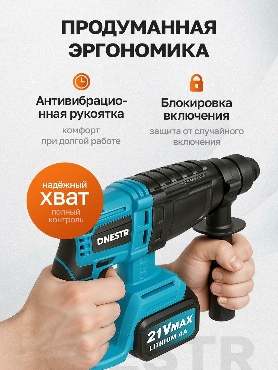 Перфоратор аккумуляторный бесщеточный DNESTR, 21V, 2,6 Дж, 2 АКБ, 4 Ач, кейс интересное: