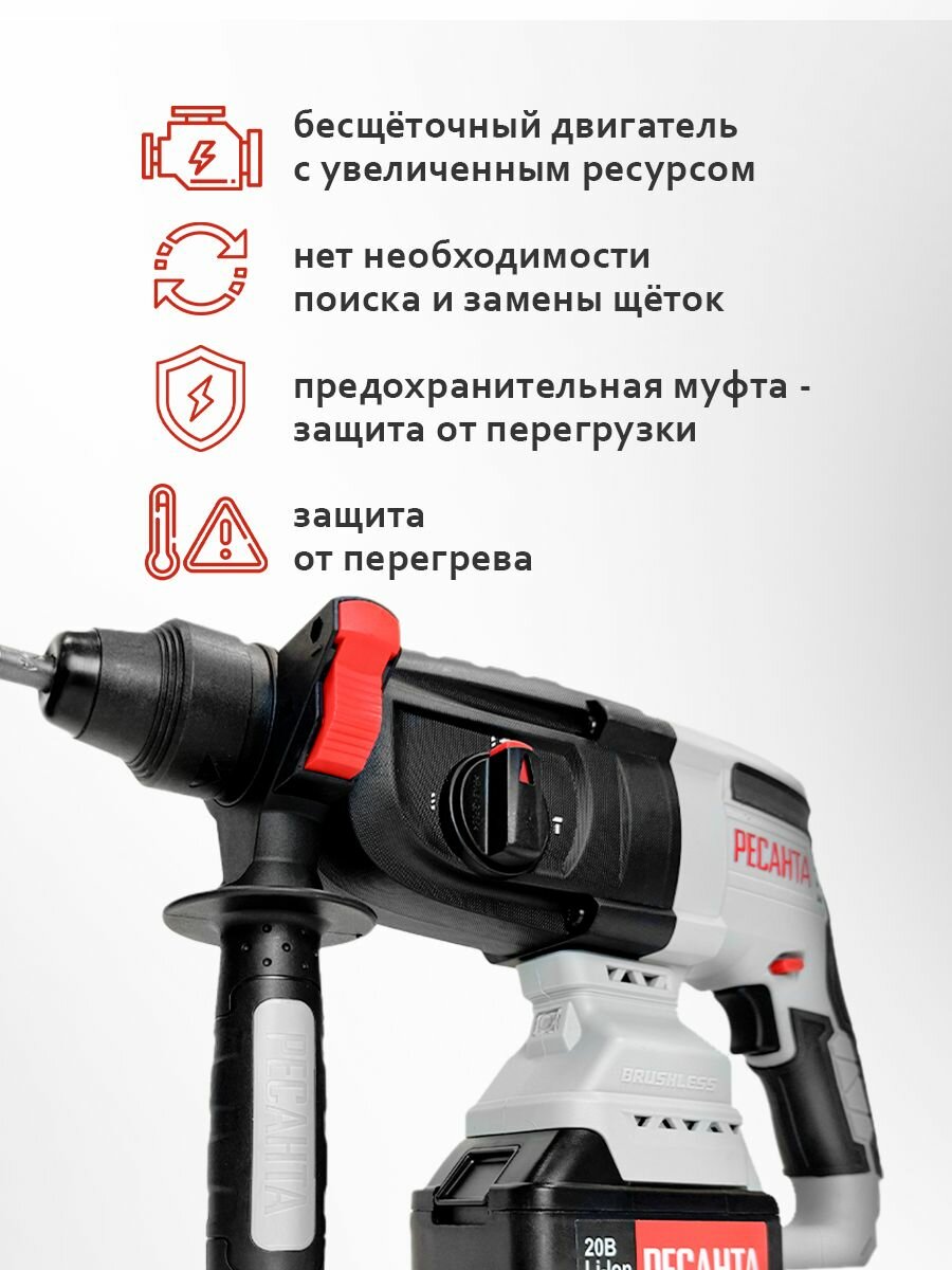 Перфоратор аккумуляторный Ресанта АП-3.2Li-Ion, бесщеточный, 20 В, 3,2 Дж интересное: