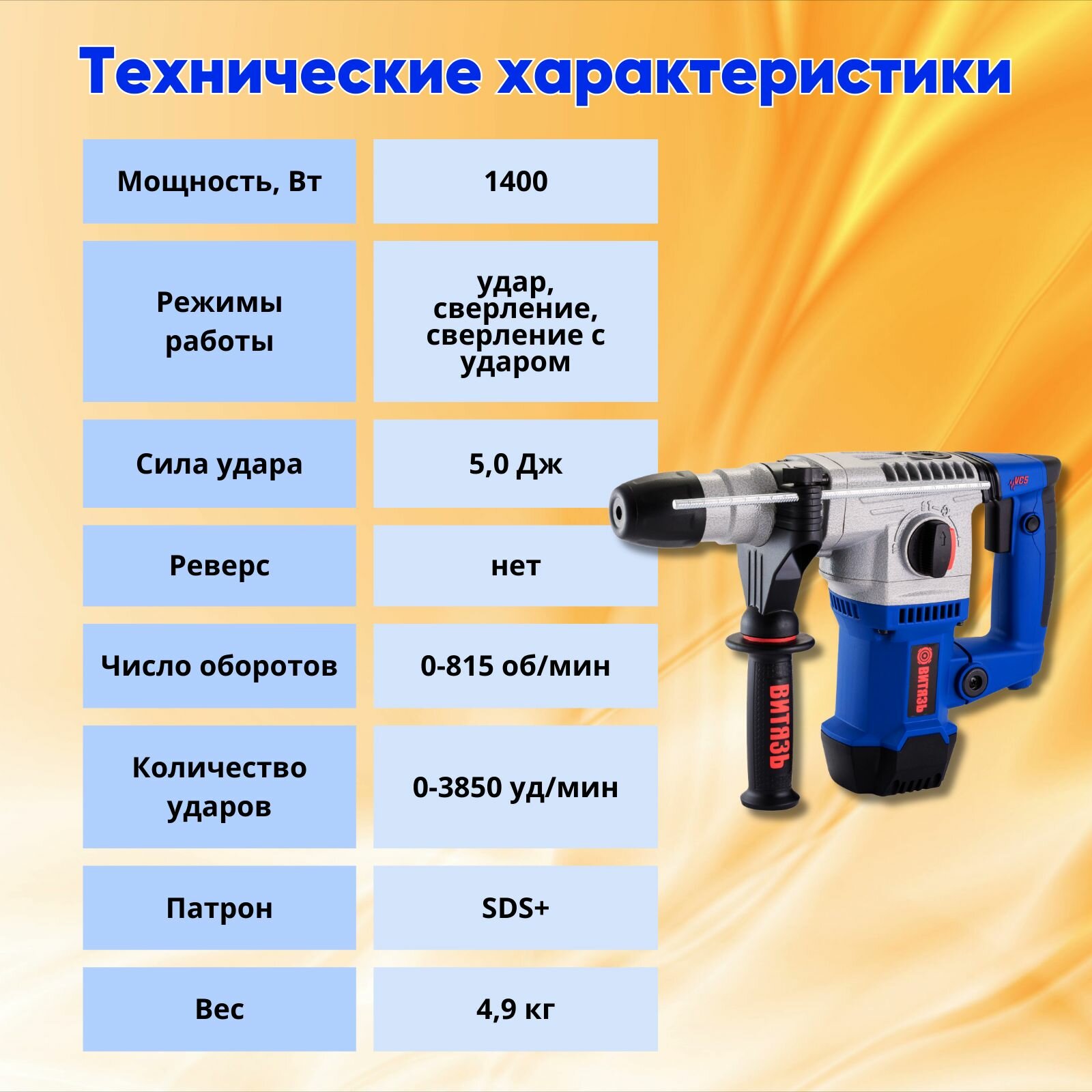 Перфоратор электрический Витязь ПЭ-1400, 5 Дж, SDS +(Бур 4шт, Пика, Зубило, Пылезащитный колпачок, Кейс) интересное: