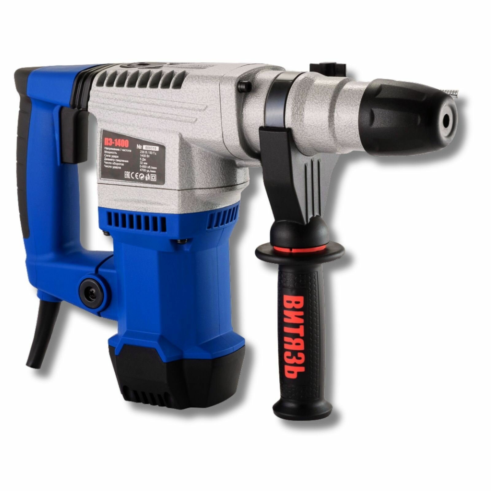 Купить Перфоратор электрический Витязь ПЭ-1400, 5 Дж, SDS +(Бур 4шт, Пика, Зубило, Пылезащитный колпачок, Кейс)